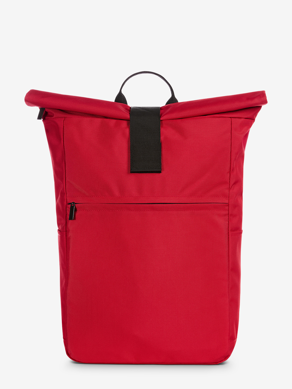 Urban flap backpack; large main compartment with zip and additional hook-and-loop flap; RPET upper material; padded notebook compartment and flat slip-in compartment inside; large front zip pocket; two side slip-in compartments e.g. for water bottles; padded carrying system; handle