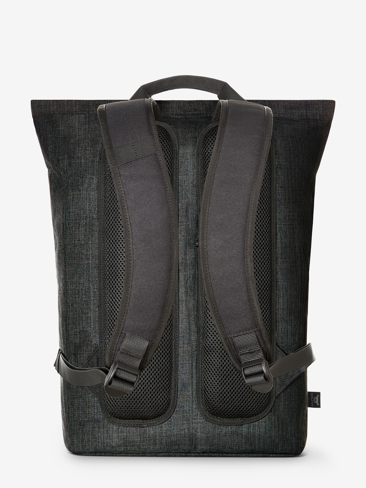 streamlined, modern backpack; main compartment with zip and padded notebook compartment; rPET outer material; high-quality metal accessories; padded base; elaborately padded back with hidden zip compartment; length-adjustable padded shoulder straps with rubber loops to attach items such as sunglasses; handles