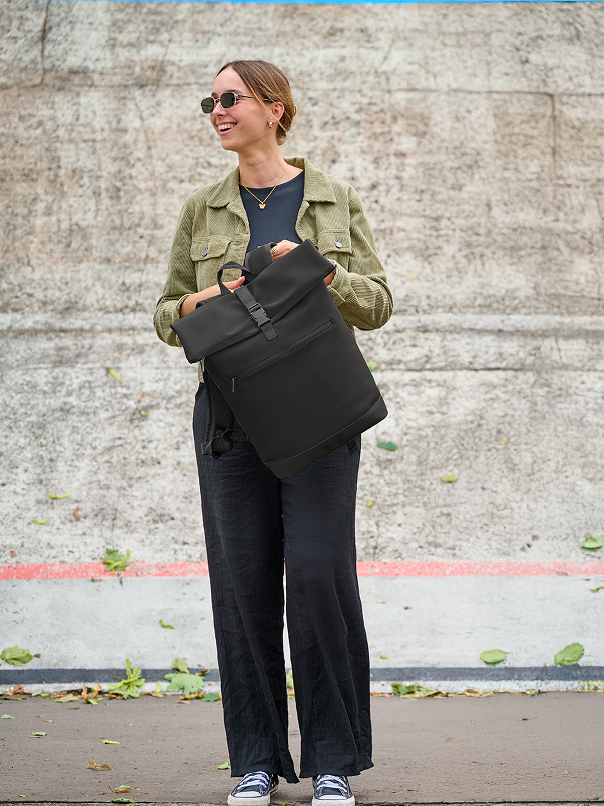 The name says it all. The PURE laptop backpack impresses with its minimalist appearance - or at least at first glance. The design and outer material make a very clean and urban impression. The fashionable colours also make their contribution. The PURE is not only beautiful to look at, but also very easy to use. This is due to the beading effect with which the recycled outer material defies almost all weather conditions. Of course, the zips are waterproof as well. And with its reinforced base, the PURE laptop backpack is extremely robust and the padded carrying system offers plenty of comfort.
