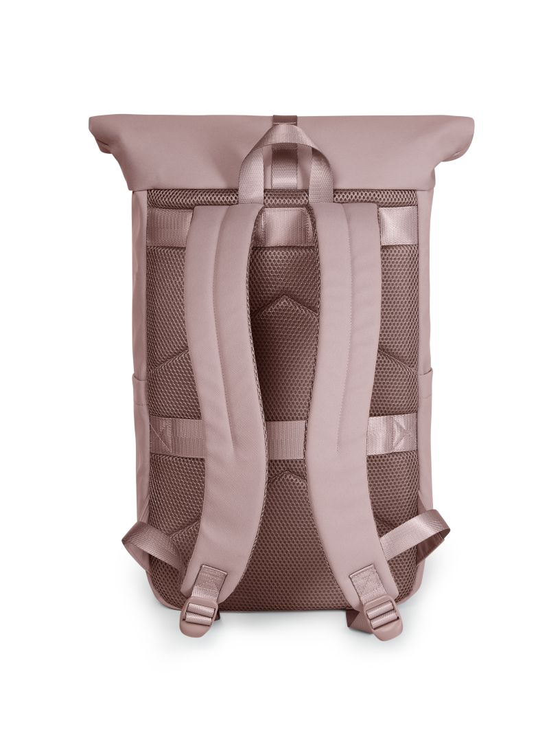 fashionable roll-top backpack; zippered main compartment with adjustable fastening system; loop strap on the lid; high-quality metal accessories; padded notebook compartment; zippered front pocket; two side pockets; padded base; padded carrying system; fastening loop on the back for trolley handle; handle