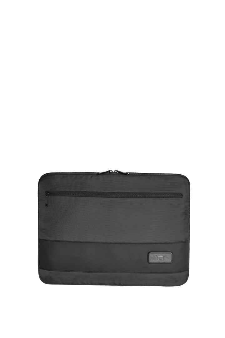 A classy utensil for office workers, for whom spur of the moment decisions are indispensable. The STAGE laptop folder manages several tasks at once in a very unpretentious way: It is well-padded to stow the laptop. It can be opened wide for practical packing and unpacking. It offers space for cables and co. in the large front pocket with zip. And it can be carried by itself or can be added to other bags as a separate removable laptop compartment. But this laptop folder is unlikely to simply disappear into bags. The subtle iridescent fabric simply looks too good for that. It shows off the colours to their best advantage, excitingly contrasted with a black stripe.