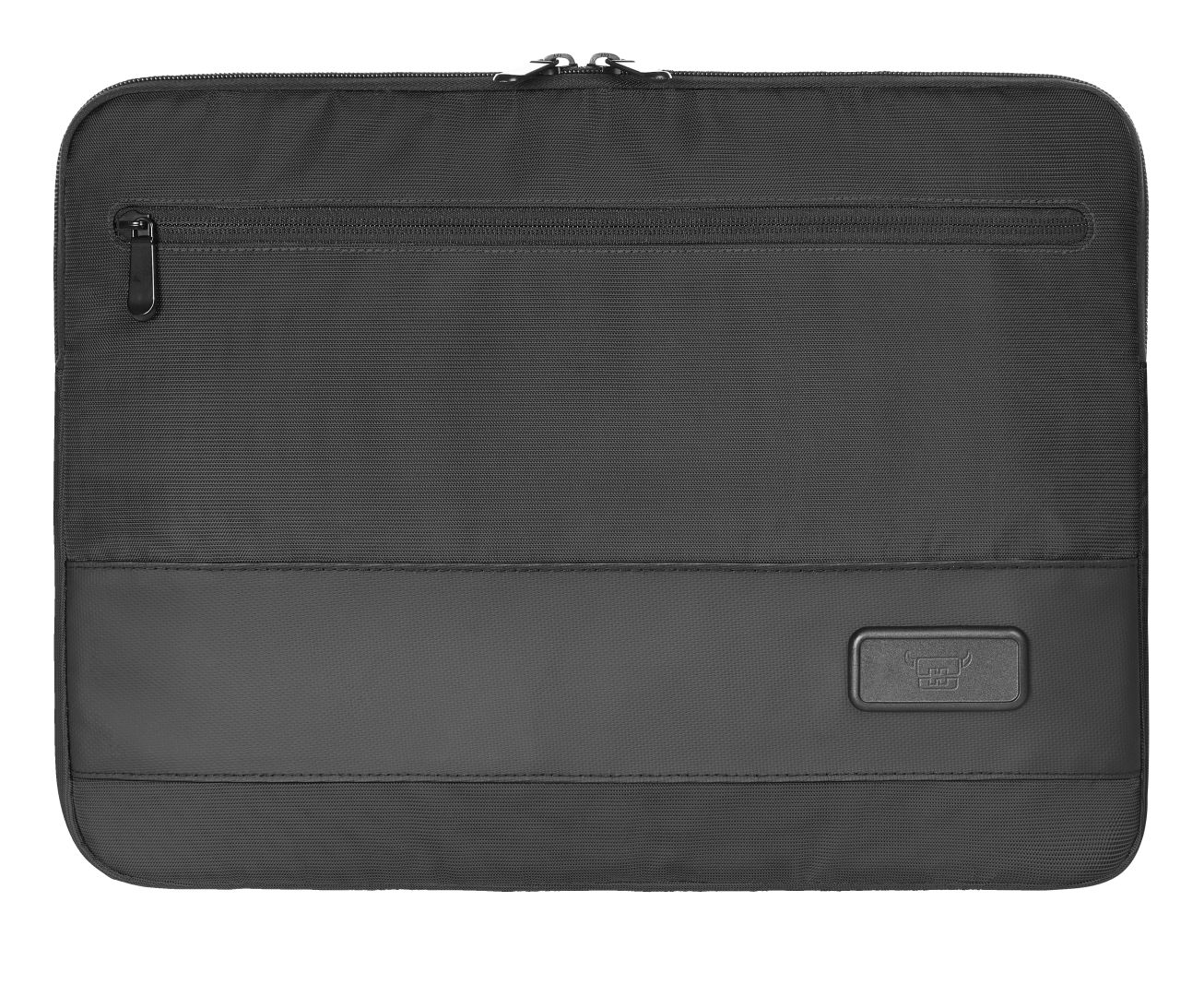 attractive laptop folder with contrasting stripes; HFL® carrier for your logo; padded main compartment with 2-way side zip for easy filling; front pocket with zip