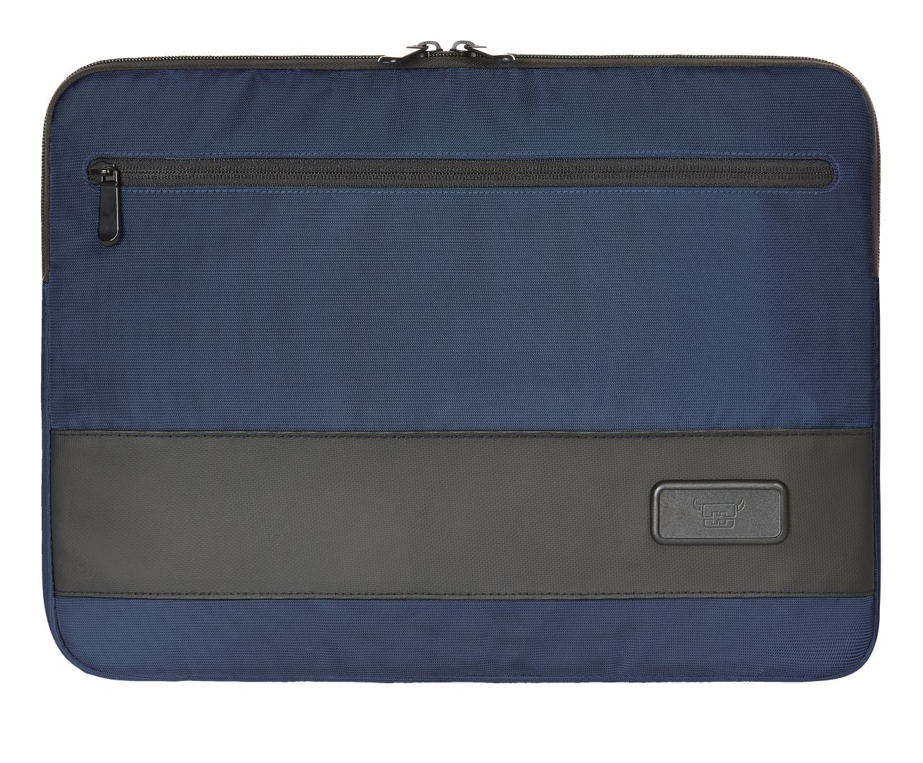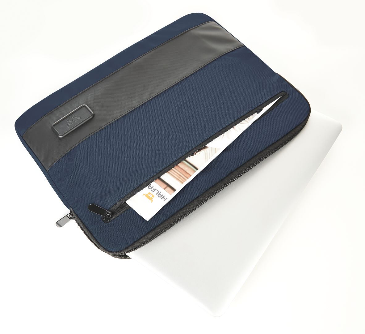 attractive laptop folder with contrasting stripes; HFL® carrier for your logo; padded main compartment with 2-way side zip for easy filling; front pocket with zip