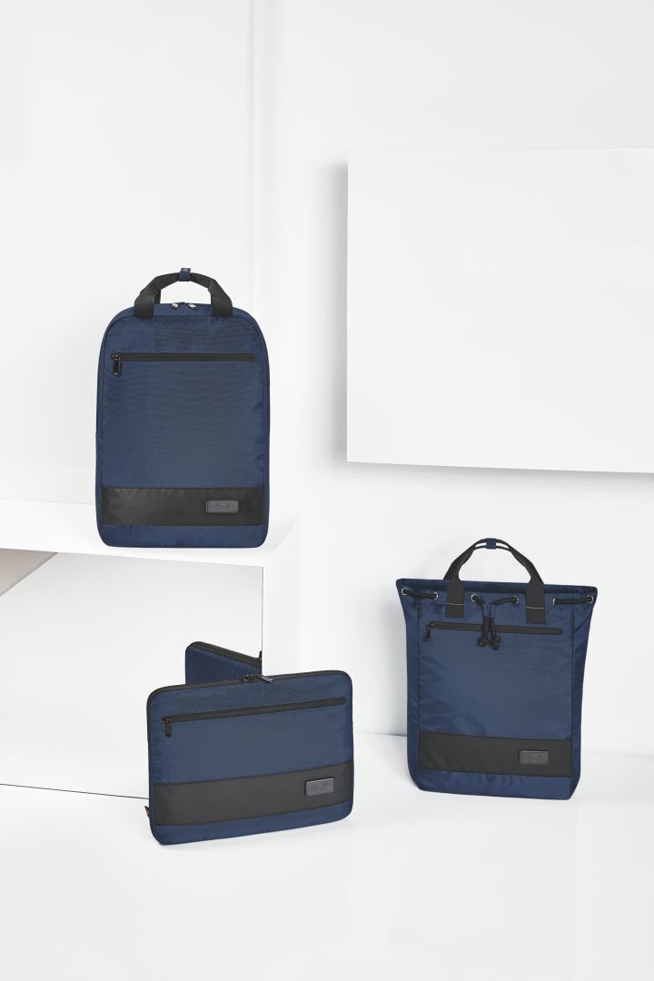 A classy utensil for office workers, for whom spur of the moment decisions are indispensable. The STAGE laptop folder manages several tasks at once in a very unpretentious way: It is well-padded to stow the laptop. It can be opened wide for practical packing and unpacking. It offers space for cables and co. in the large front pocket with zip. And it can be carried by itself or can be added to other bags as a separate removable laptop compartment. But this laptop folder is unlikely to simply disappear into bags. The subtle iridescent fabric simply looks too good for that. It shows off the colours to their best advantage, excitingly contrasted with a black stripe.
