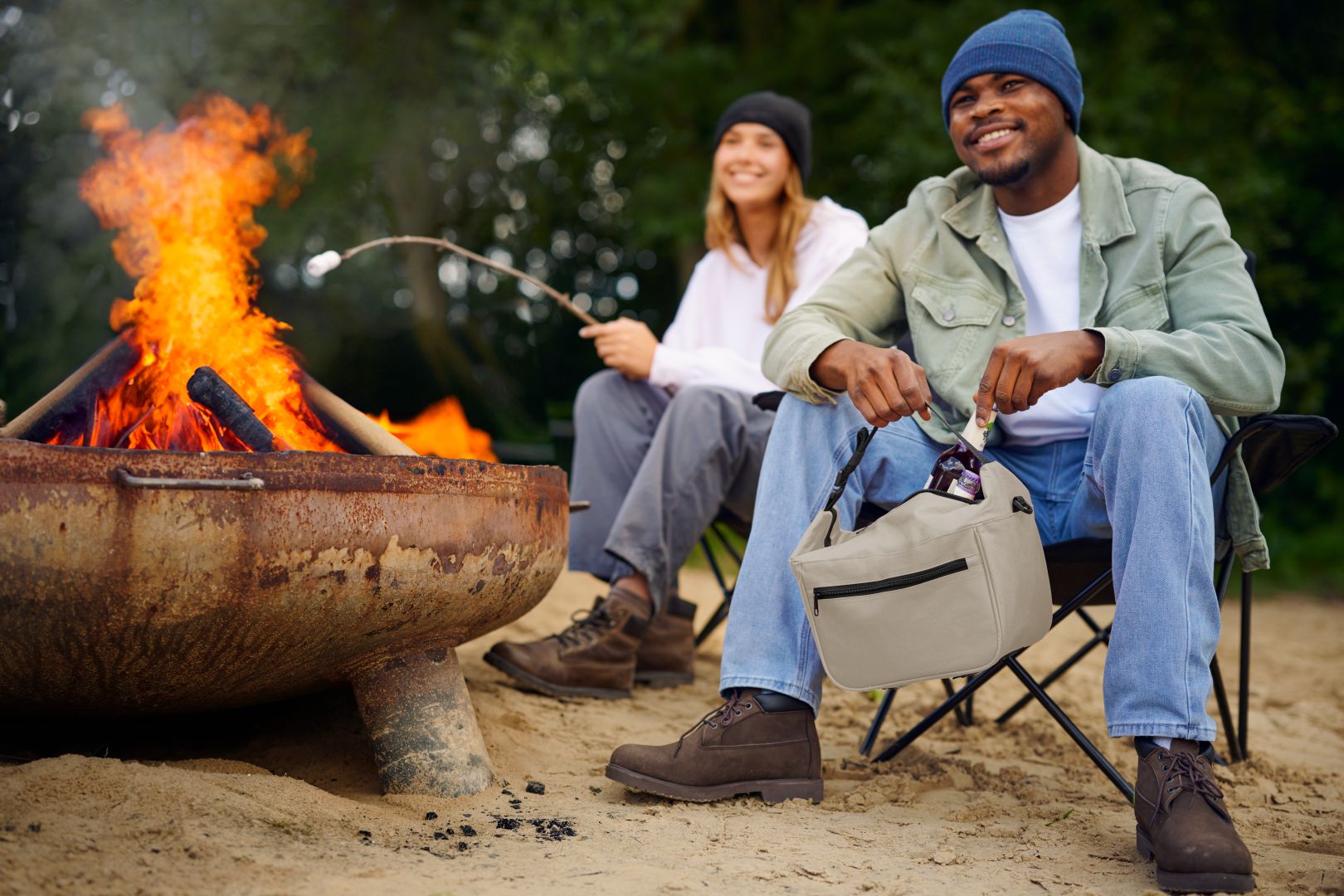 Whether for cycling, camping, walking, fishing, the beach, or the park: the SOFTBASKET lunch bag is made for everyone who loves the outdoors. It keeps your chosen snacks and drinks, from salads to six-packs, nice and cool. And thanks to the little feet on the base and the wipe-down inside, it always stays clean and tidy. Ingeniously compact with recycled outer material, it offers a range of options so you don’t have to break a sweat carrying it. Tip 1: Simply fix the lunch bag to your bicycle handlebars, made possible by the suitable fixing loops. Tip 2: Carry the bag in your hand or over your shoulder - you can also attach your own stylish shoulder strap to the rings on both sides. Tip 3: Take the bag with you to the office and take your lunch break outside with your own snacks - wonderful!