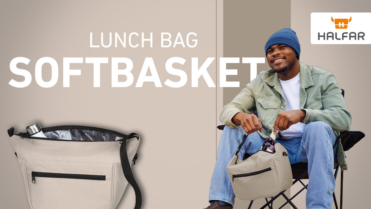 Whether for cycling, camping, walking, fishing, the beach, or the park: the SOFTBASKET lunch bag is made for everyone who loves the outdoors. It keeps your chosen snacks and drinks, from salads to six-packs, nice and cool. And thanks to the little feet on the base and the wipe-down inside, it always stays clean and tidy. Ingeniously compact with recycled outer material, it offers a range of options so you don’t have to break a sweat carrying it. Tip 1: Simply fix the lunch bag to your bicycle handlebars, made possible by the suitable fixing loops. Tip 2: Carry the bag in your hand or over your shoulder - you can also attach your own stylish shoulder strap to the rings on both sides. Tip 3: Take the bag with you to the office and take your lunch break outside with your own snacks - wonderful!