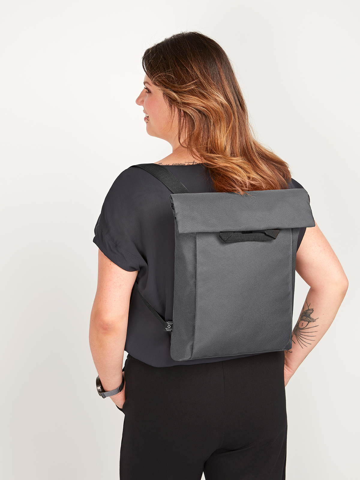 versatile, functional companion with a large promotional space; main compartment with concealed zip, fits A4 documents; length-adjustable strap system, can be worn as a shoulder bag or backpack; handle
