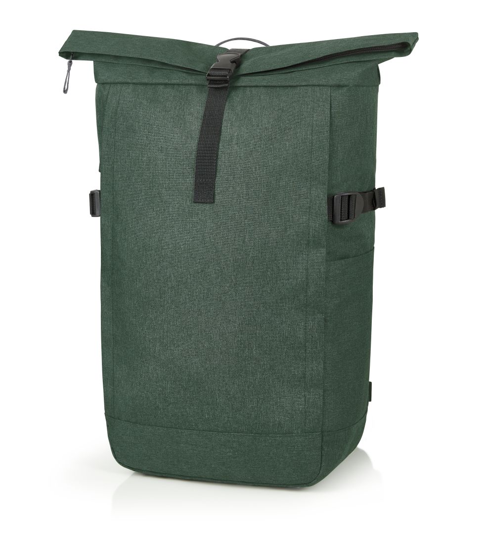 This notebook backpack really does everything right: firstly for the climate, because it is made with rPET, the fibres from recycled plastic bottles. And then it has just the format that many are looking for. With enough storage space for everyone who likes to combine work and life. A 15-inch notebook and a little shopping trip are no problem for the CIRCLE L. Side lashing straps adjust the volume and, together with the side pockets on the outside, also take an umbrella, newspaper, jacket, etc. Last but not least, the CIRCLE L demonstrates greatness in comfort. Handle, shoulder straps, individually adjustable chest straps and padded back ensure one simple conclusion: great!