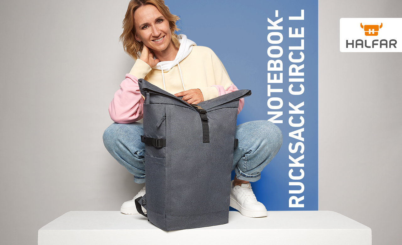 This notebook backpack really does everything right: firstly for the climate, because it is made with rPET, the fibres from recycled plastic bottles. And then it has just the format that many are looking for. With enough storage space for everyone who likes to combine work and life. A 15-inch notebook and a little shopping trip are no problem for the CIRCLE L. Side lashing straps adjust the volume and, together with the side pockets on the outside, also take an umbrella, newspaper, jacket, etc. Last but not least, the CIRCLE L demonstrates greatness in comfort. Handle, shoulder straps, individually adjustable chest straps and padded back ensure one simple conclusion: great!