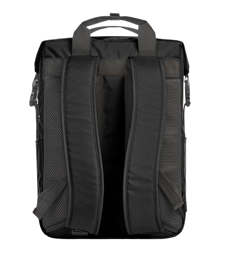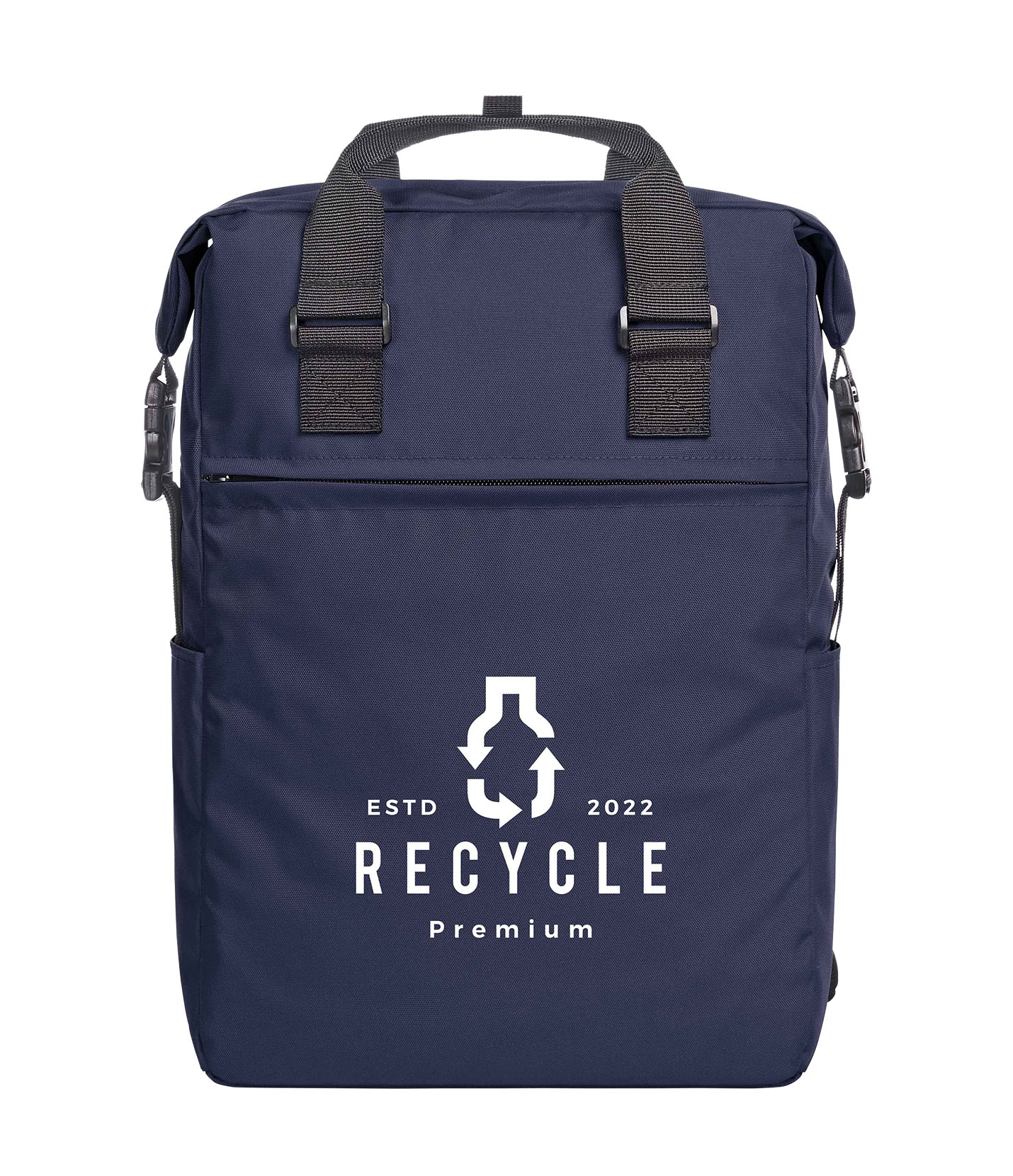 Show some edge or round it out? With the DAILY laptop backpack, you can shape your backpack to match your mood. Vary its striking boxy silhouette and its volume however you want – all thanks to the side straps that can be linked at the top. This creates a charming crumple zone, with the backpack looking rounder and smaller. You can also enjoy the full storage space with a large zipped front pocket, a spacious main compartment with 15.6 laptop section, two slip-in side pockets and, of course, the impressive advertising space. Made with recycled rPET material for anyone who likes to be flexible and in shape.