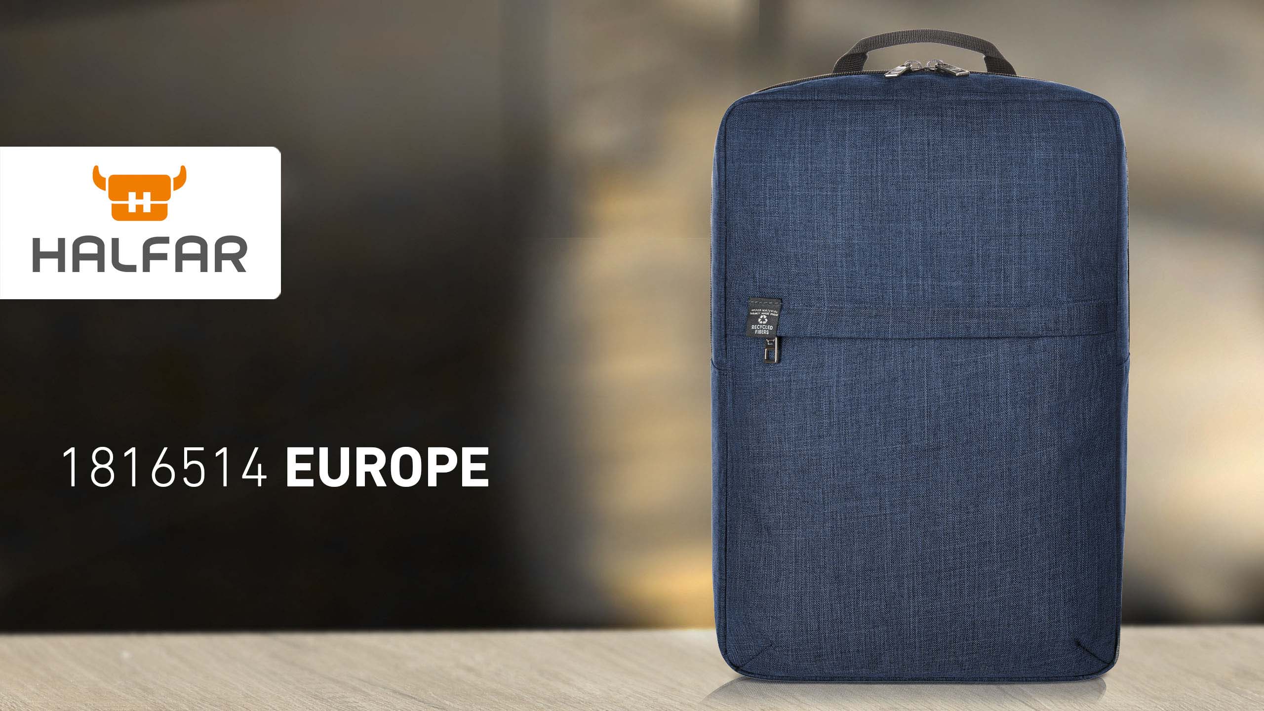 When you ask German, French or Swedish people, you are bound to find they all associate something different with Europe. It is clear-cut in the case of this bag: Europe represents sustainability, quality and speed, as the notebook backpack EUROPE is manufactured in Europe - just like the entire series. This is how a high-end product is created that can be ordered directly from stock at HALFAR®. The reason for the backpack carrying notebooks in a more sustainable way is not just simply due to these short journeys, but also due to its outer material. rPET is obtained from recycled PET bottles and here it is used in beautiful melange shades. The cut is linear, modern and presents itself from a smart, young angle thanks to its two handles.