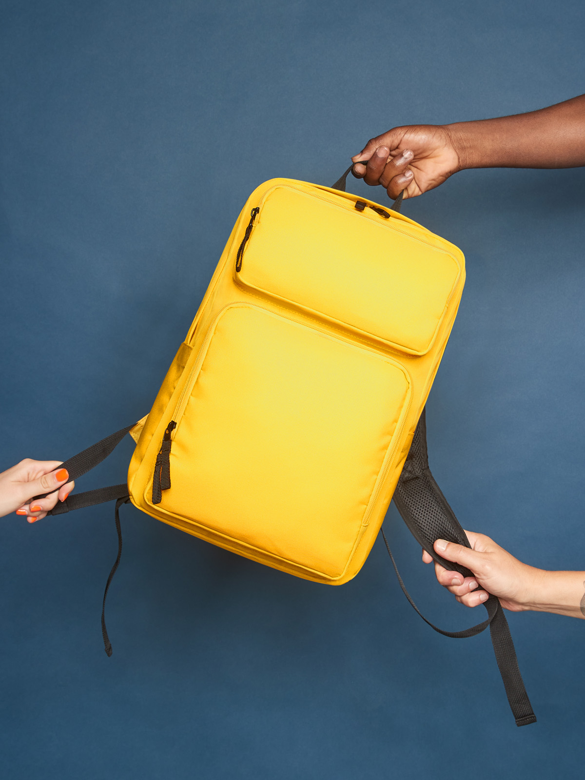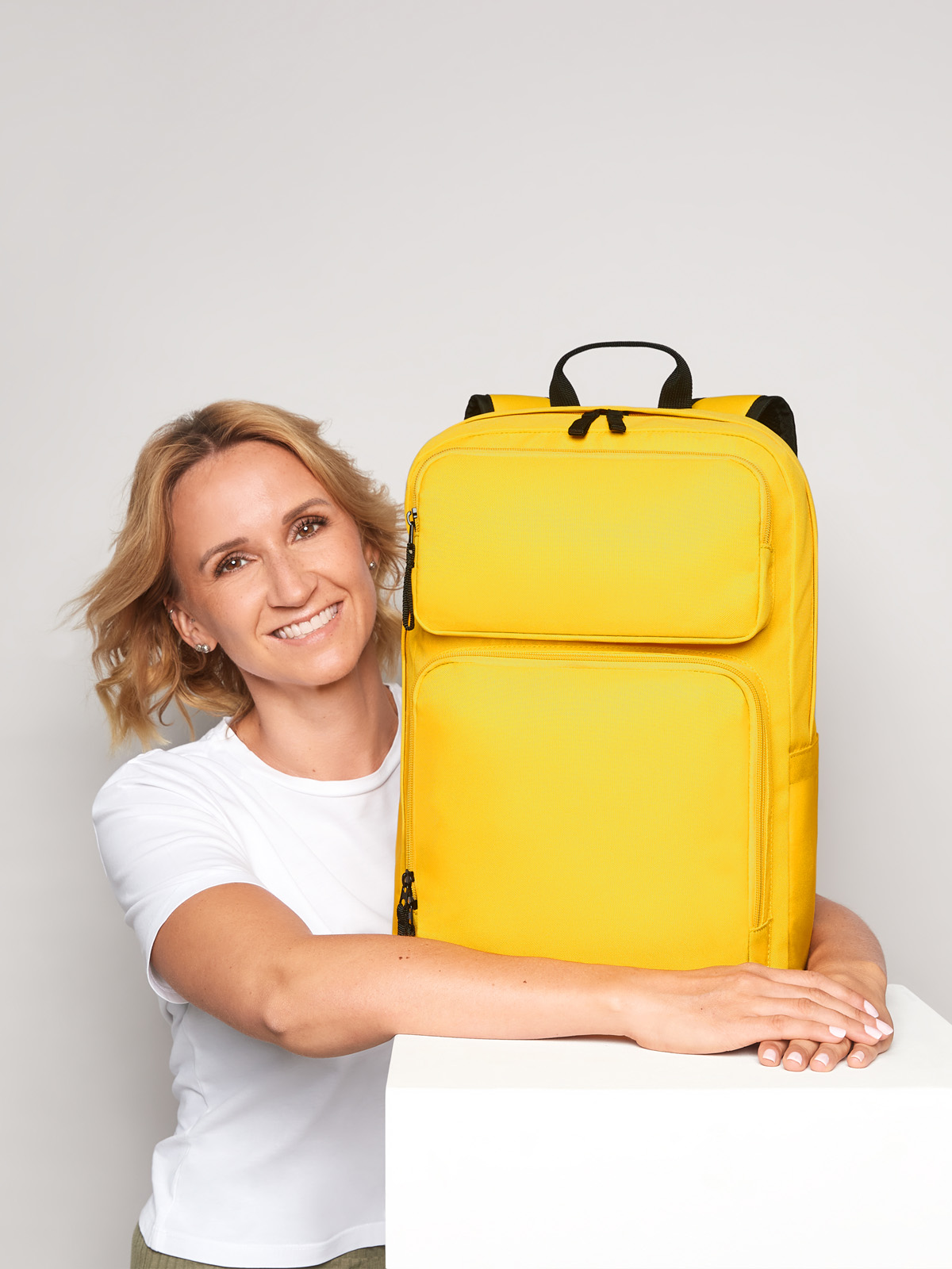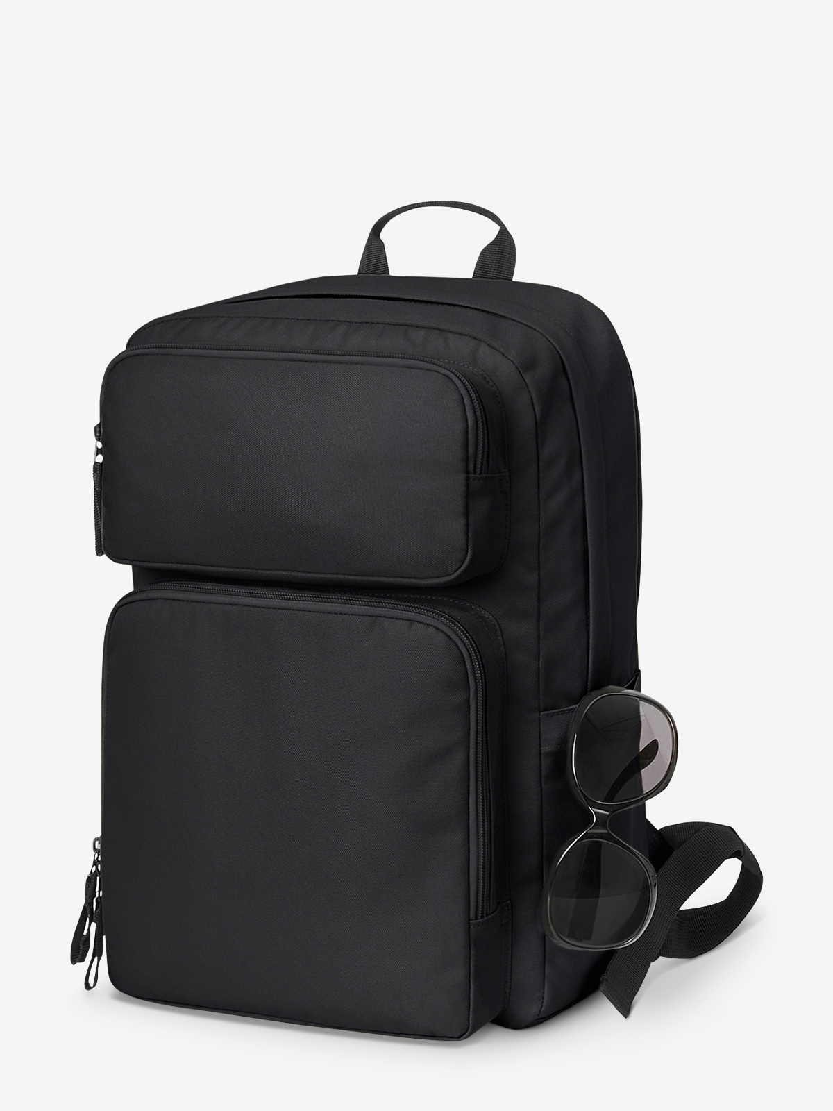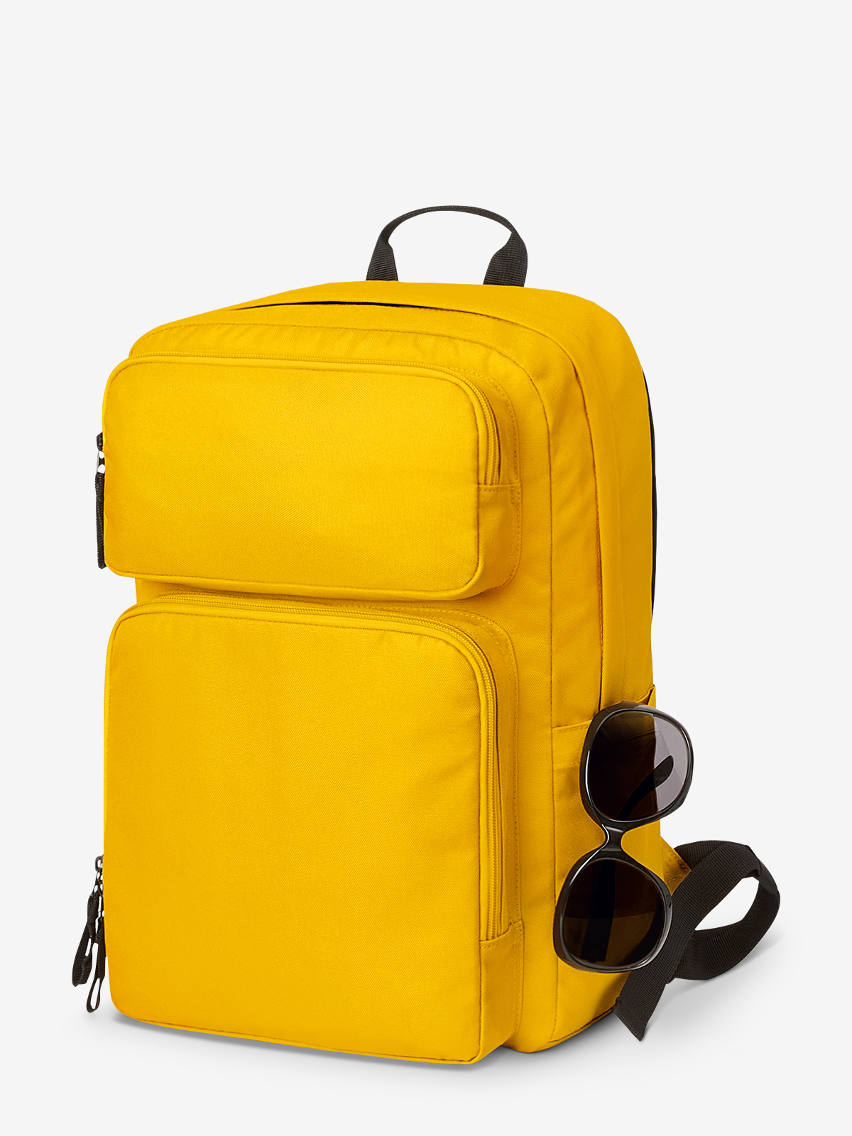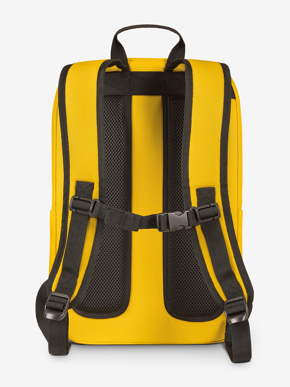 Streamlined shape. Young colours. Beautiful functions. Recycled material. The FELLOW notebook backpack is perfect for university, office, leisure and for anyone who is on the move in an urban and fashionable way. The two patch front pockets are an eye-catcher, providing a geometric cargo style. In addition to the fine aesthetics, it offers hard-hitting function with a padded back, adjustable chest and shoulder straps, flat side pockets and 15-inch notebook compartment. The polyester fabric of the outer fabric is made from recycled PET bottles and is as robust and elegant as you could wish for in your everyday life.