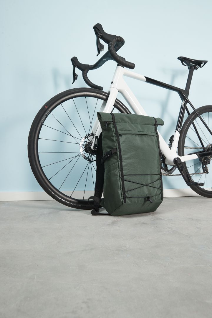 Always stay flexible: with this notebook backpack theprogram is already in the name. In no time at all, its volume can be expandedconsiderably. This is ensured by the flap with roll-top. For the everyday rideto the office, the laptop goes into the compartment accessible at the back, thenewspaper and water bottle in the side pockets, and the rain jacket for cyclingis ready to hand in the elastic band system in the event of a short shower. Forthe weekend trip, there is literally more in it: so a badminton racket fit inthe extended main compartment and an umbrella in the side compartment withfixing strap. And when traveling, the notebook backpack is a great companion, thanksto the attachment loop for trolley handles. But wherever it is in use, itflatters with its silky sheen, sustainable recycled material, velour liningin the laptop compartment and straightforward design.