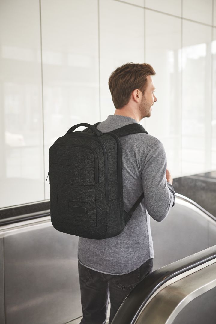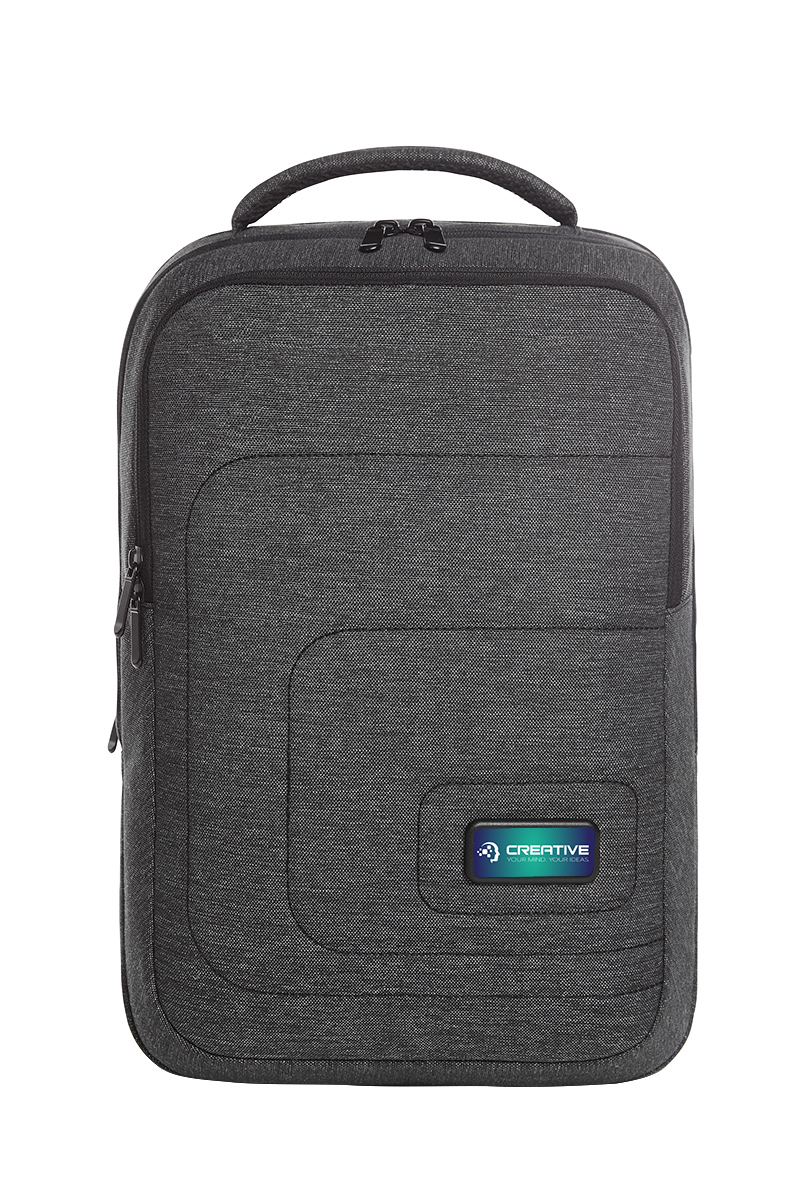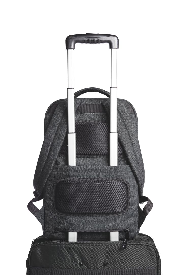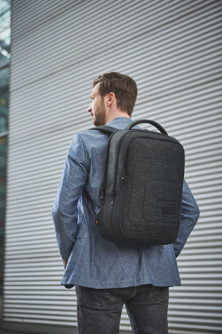 For example, the notebook backpack FRAME. It offers particularly high wear comfort. This is ensured by the padding on the back and straps. So, pack it full of office supplies, a notebook and everything else you need for the day or a short business trip. Practical: the laptop goes in the separate compartment at the back, so nothing will get mixed up. And a back compartment is turned into a trolley holder in no time. For decoration, the notebook backpack is equipped with HALFAR FAST LANE® – everything goes so quick with this decoration method.