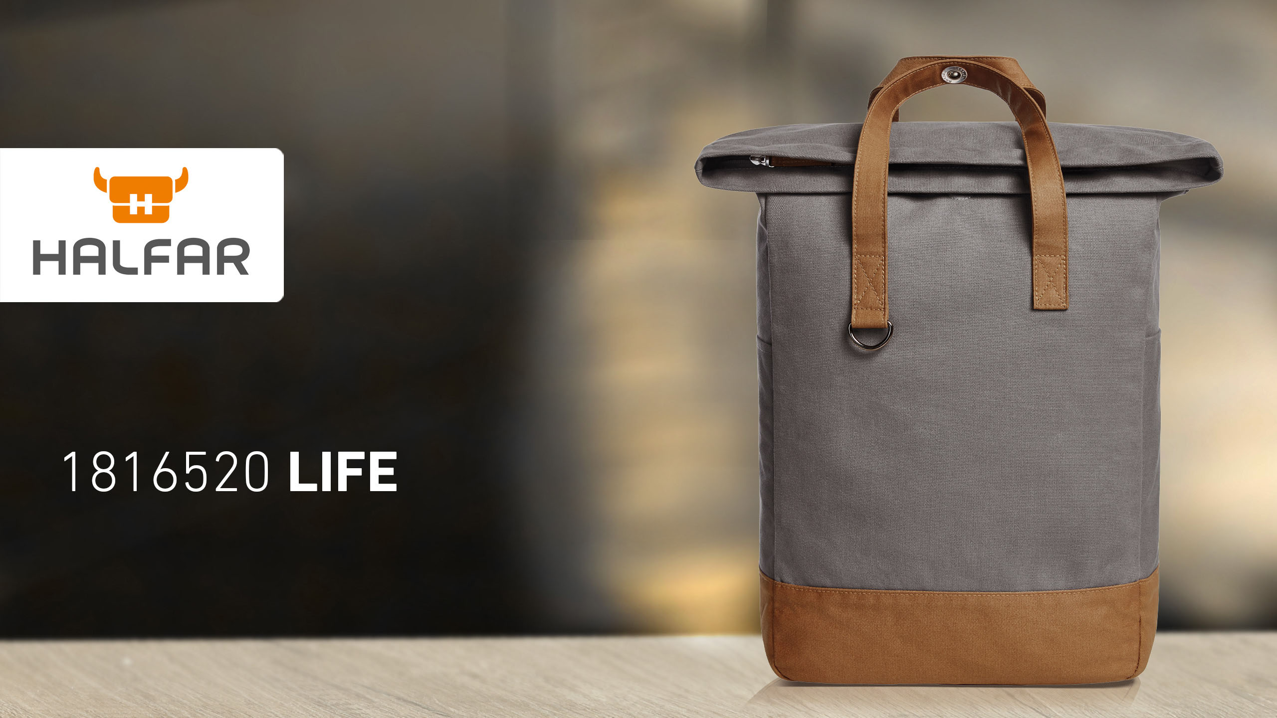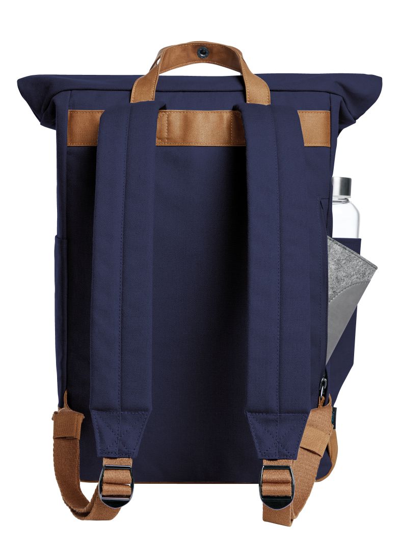 modern, elaborately crafted flap backpack; lovingly designed with high-quality metal accessories and coated cotton trims; flap fastened in place with integrated magnetic clasp; large zipper main compartment; zipper inner pocket; padded notebook compartment; two flat insert pockets; secure zipper rear insert pocket; handles with press stud; padded, length-adjustable shoulder straps with elastic fixing for waist strap