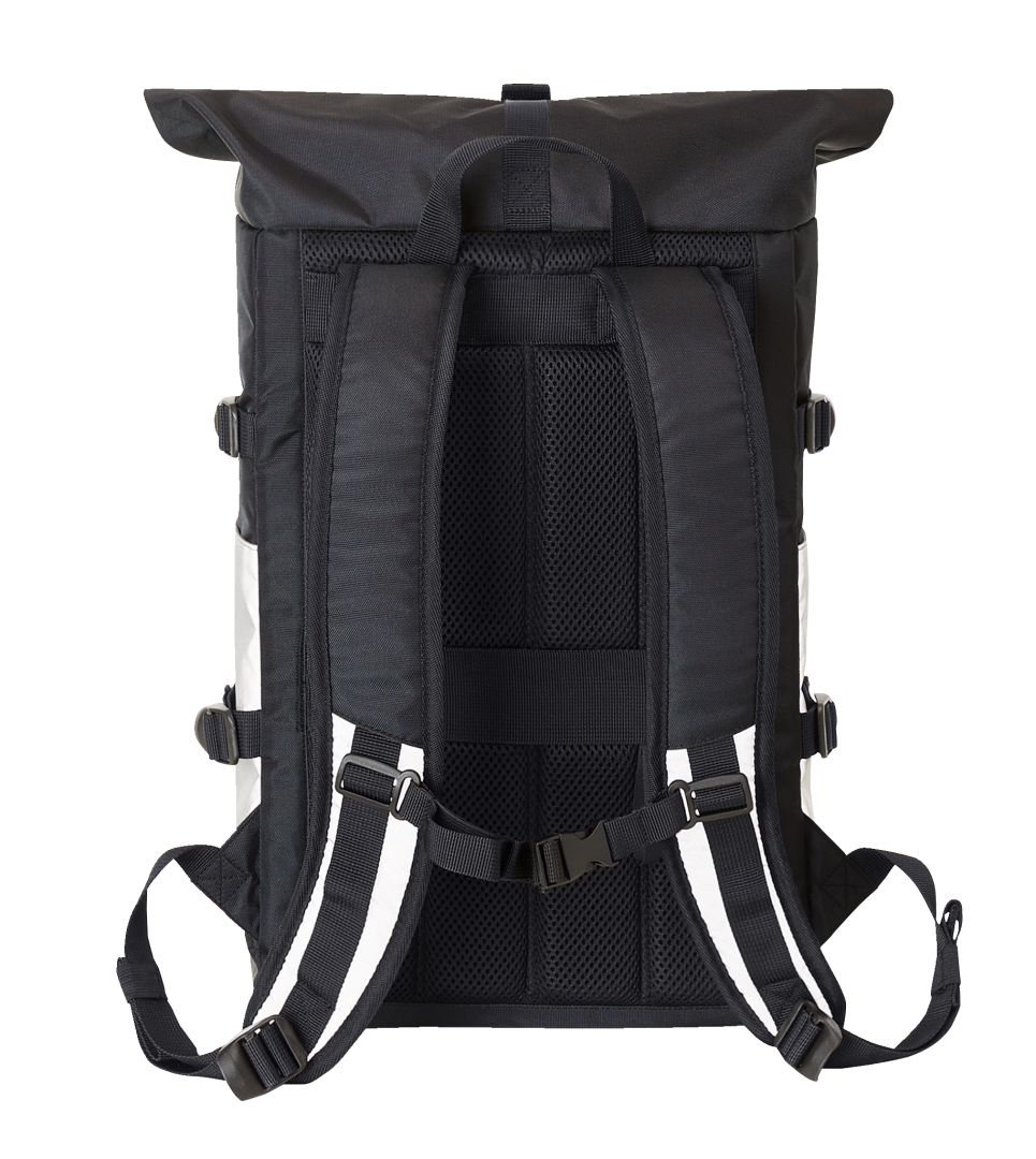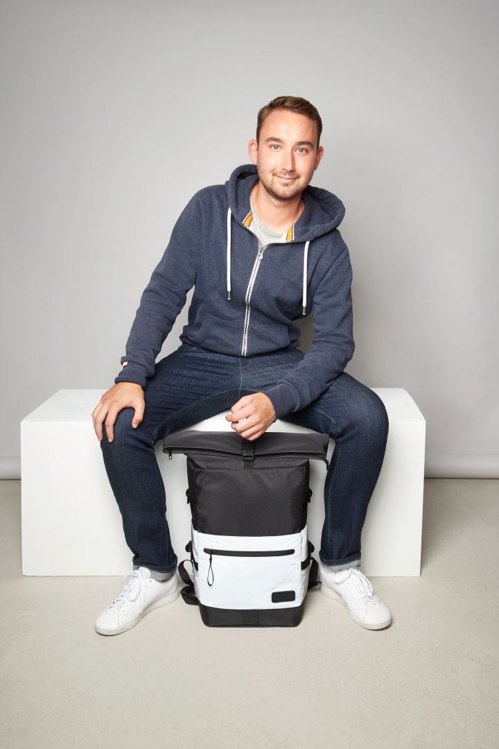 We named this backpack REFLEX L and had exactly two good reasons for doing so: firstly, the material is slightly reflective and literally gives the notebook backpack a beautiful radiance. Secondly, the backpack triggers a very natural reflex in most people: a want to have! After all, it combines casual courier style with practical added values, such as the roll-up function with zip, which allows the backpack to be used folded or at full length. Or the padded laptop compartment and the mesh zipped compartment inside, which neatly stows everything from 15-inchers to mice. Or the adjustable chest straps. Or the lush back padding with small extra compartments hidden underneath. And did we mention the option of quick decoration using the HALFAR FAST LANE®?