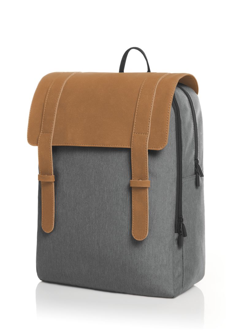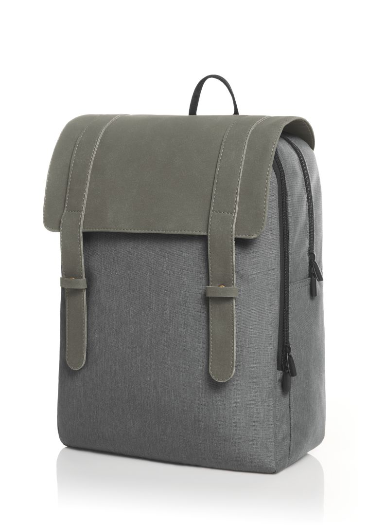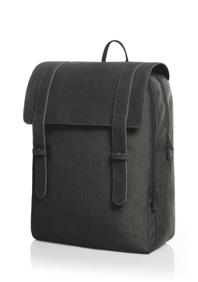 This newcomer will surely become the secret focus of the next 9 o'clock meeting: The URBAN notebook backpack in the aforementioned vintage look and exquisite material mix. Smooth PU synthetic leather, tone-in-tone with an extraordinary melange material. This superior mixture goes with the streamlined, geometric cut of the backpack. But the URBAN is not rigid. On the contrary: It makes daily life comfortable for its wearer. Thanks to its spaciousness, you have never to do without laptop, stapler, diary and breakfast snack when on the move. And it does not just envelop the notebook softly and securely, but also gives the back and shoulders a treat with comfortable padding. Comfort is always hip after all.