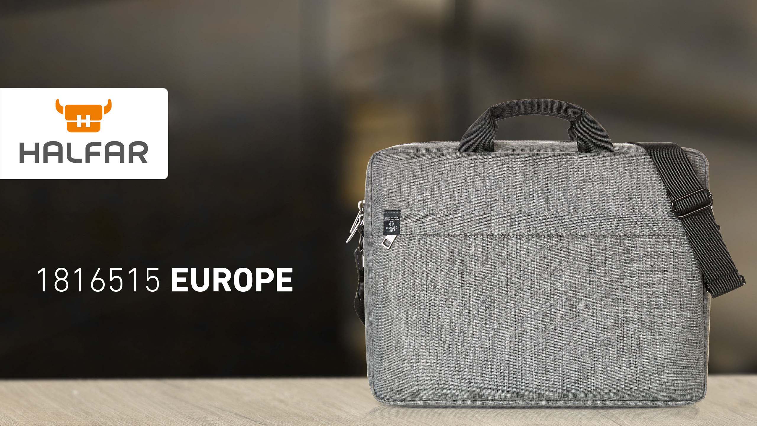 Can a recycled product be a design object at the same time? It’s a definite YES from us! As proof, we are proud to present the notebook bag EUROPE. The high quality bag in a landscape format captivates with its materiality and its consistently modern shape. Its upper material is made of rPET, a fibre gained from recycled PET bottles, used here in finely structured melange tones and perfected with high-end metal accessories. An urban design that can achieve a great deal: EUROPE transports the notebook well cushioned, lets itself be comfortably packed onto a trolley using the rear loop and is really easy to carry by the handles and shoulder strap. A sustainable quality product made in Europe, available from us directly from stock!