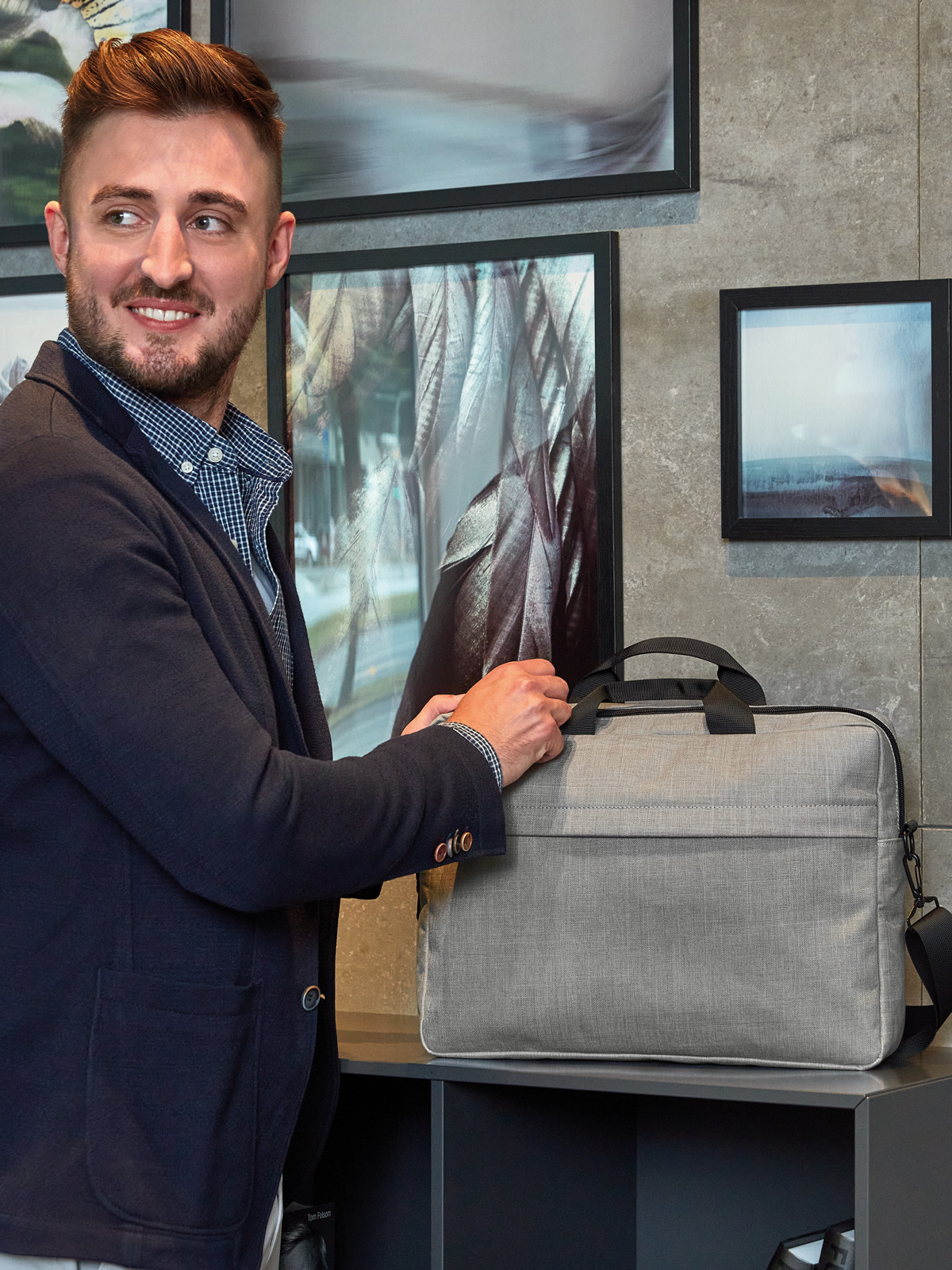 | Keyfeature: | PVC-free, notebook bag fits most 15", part of a bag series, recycled material |