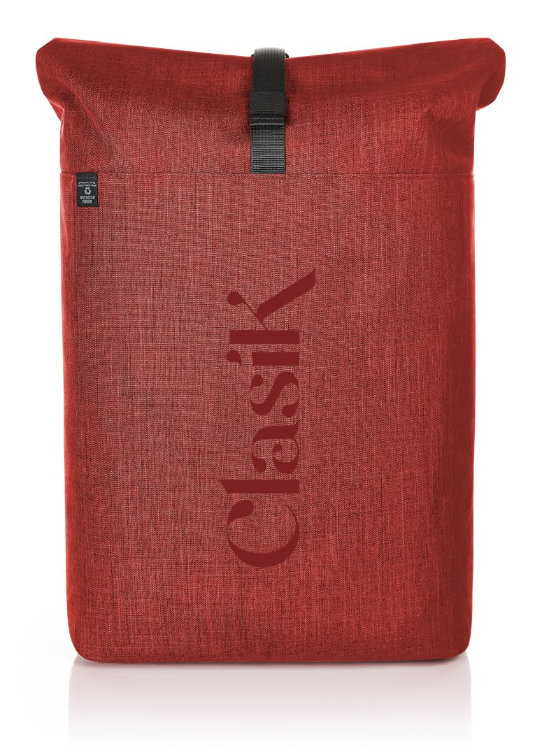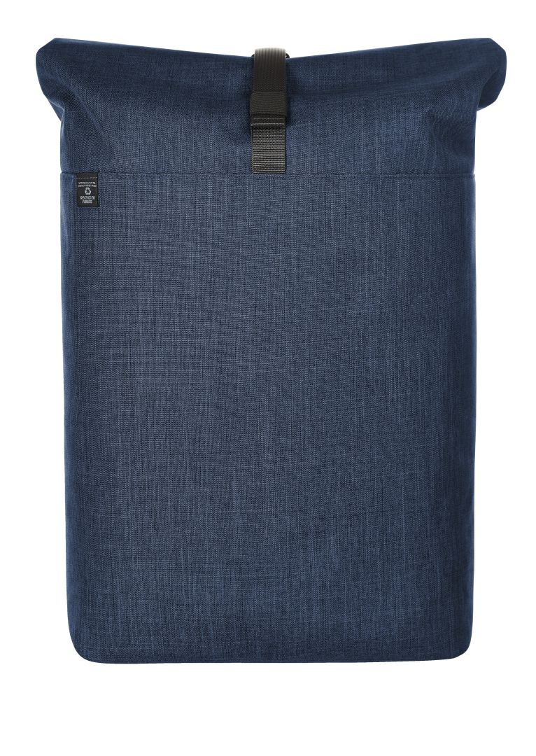 rPET is the abbreviation for recycled PET, which are polyester fibres made from plastic bottles; an outer material that conserves raw materials and deserves an appropriate design: just like our notebook roll-up backpack EUROPE. It impresses with its integrity and sophisticated minimalism, expertly staging the mottled and coated rPET material in its beautiful colours. The main compartment is closed by rolling it up, whilst a magnetic clasp and a buckle hold the opening together. The comfortably padded carrying system on the back hides a zipper compartment, which is ideal for valuable items. And there is also practical access on the side when you are out on the road. Moreover, it’s not just the material of the notebook roll-up backpack EUROPE that proves its sustainability: the whole series is manufactured in Europe and is available directly from stock.