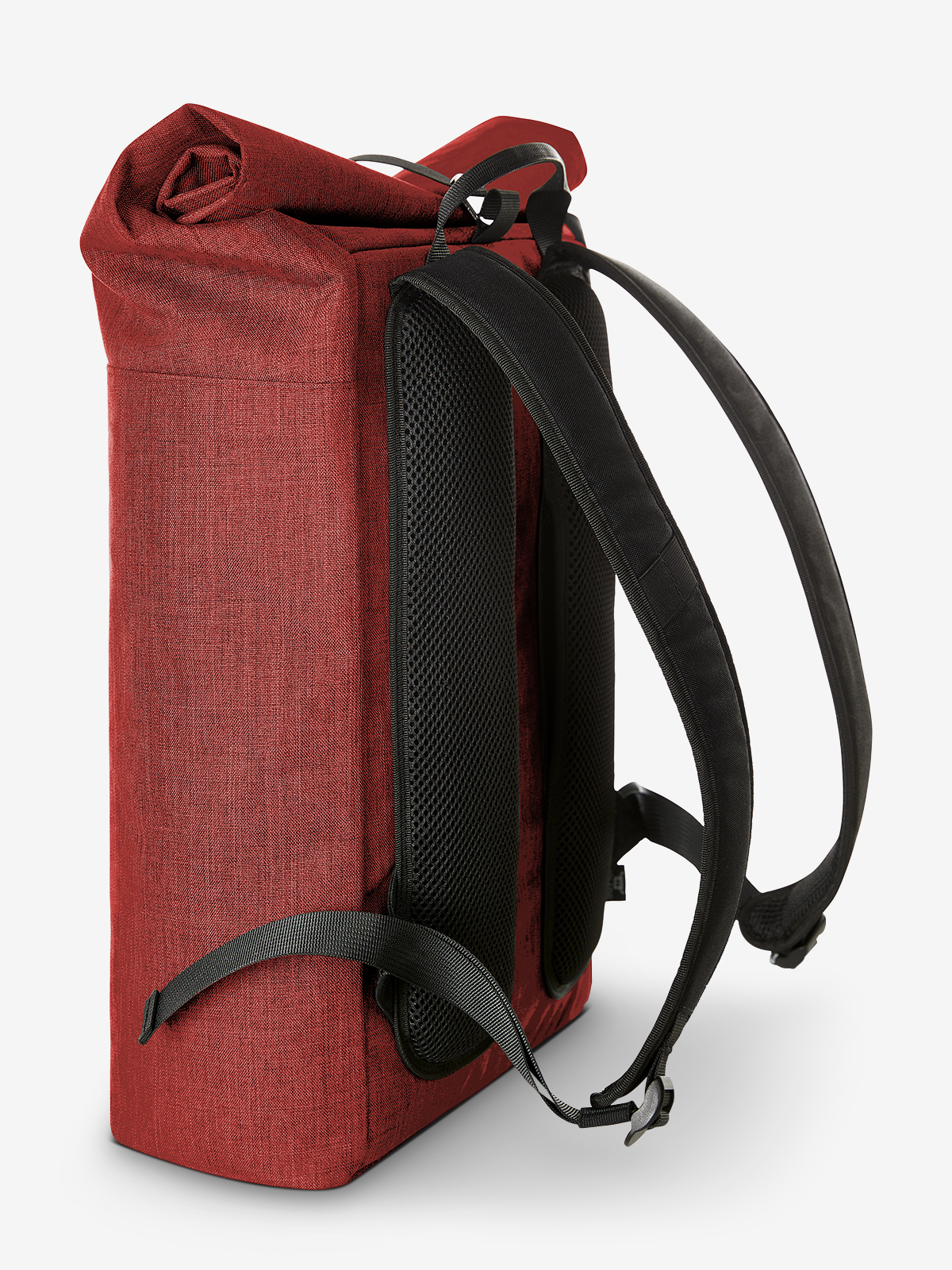 urban backpack with magnetic and roll closure; spacious main compartment with padded notebook compartment; rPET outer material; back pocket with zip; elaborately padded back with hidden zip compartment; padded base; length-adjustable padded shoulder straps with rubber loops to attach items such as sunglasses; handle