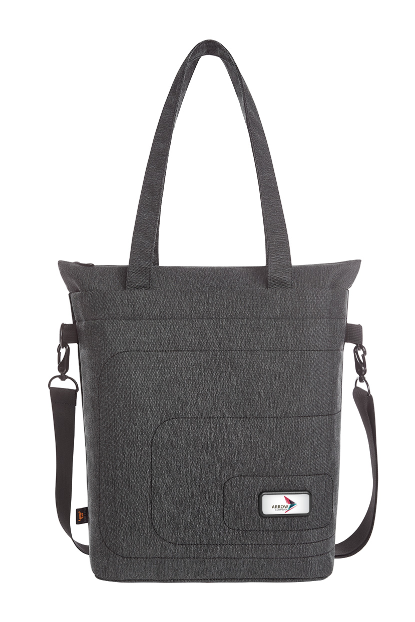 elegant shopper; elaborately-stitched front with HFL® carrier for your logo; zip main compartment with notebook compartment; two mesh pockets; large mesh zip compartment inside; flat pockets with magnetic closure outside; retractable handles; detachable, length-adjustable shoulder strap, with high-quality metal accessories