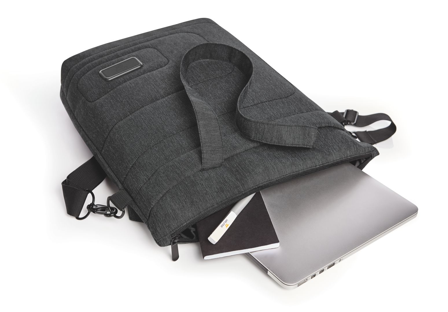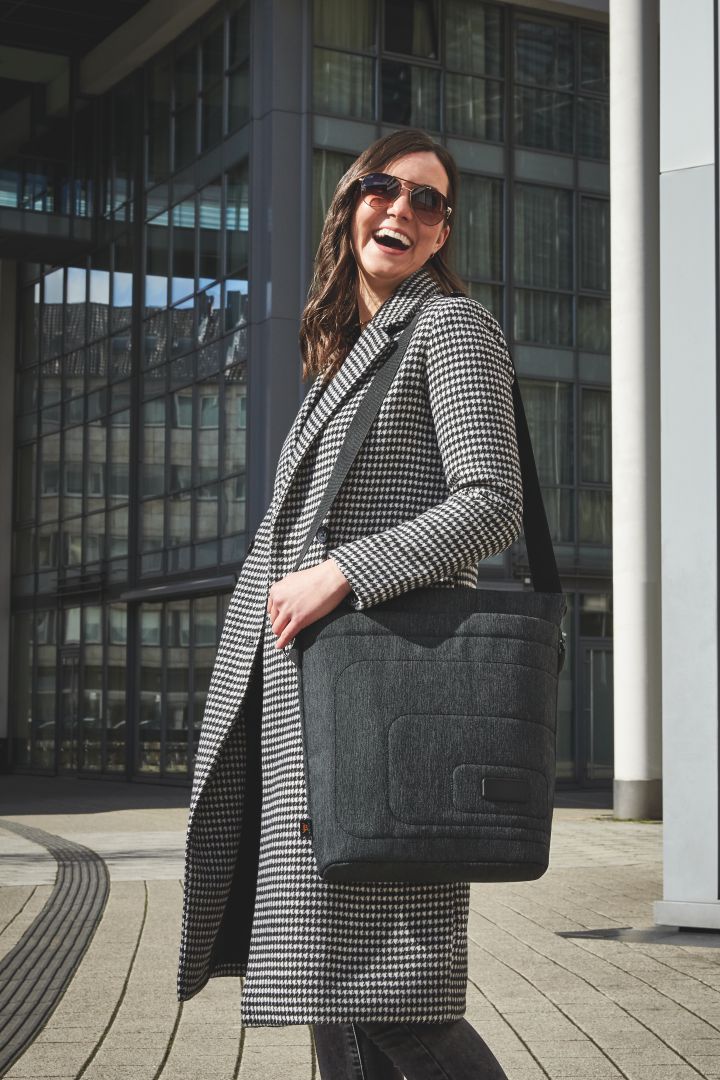 HALFAR® proudly presents: the first shopper with notebook compartment in the range. Now businessmen (and especially businesswomen) can go to meetings looking chic and fashion-conscious – and casually sip a Latte Macchiato in the cafe after work or quickly go shopping. Grab the stow-away handles or throw the detachable shoulder strap over your shoulder, just as you like. To be brief: the right frame for everyone who likes to be stylish on-the-go. The FRAME also offers a little pre-attached carrier for HALFAR FAST LANE® individual decoration.