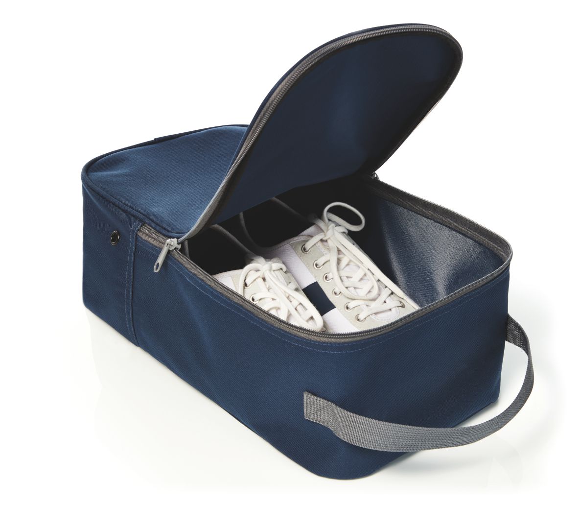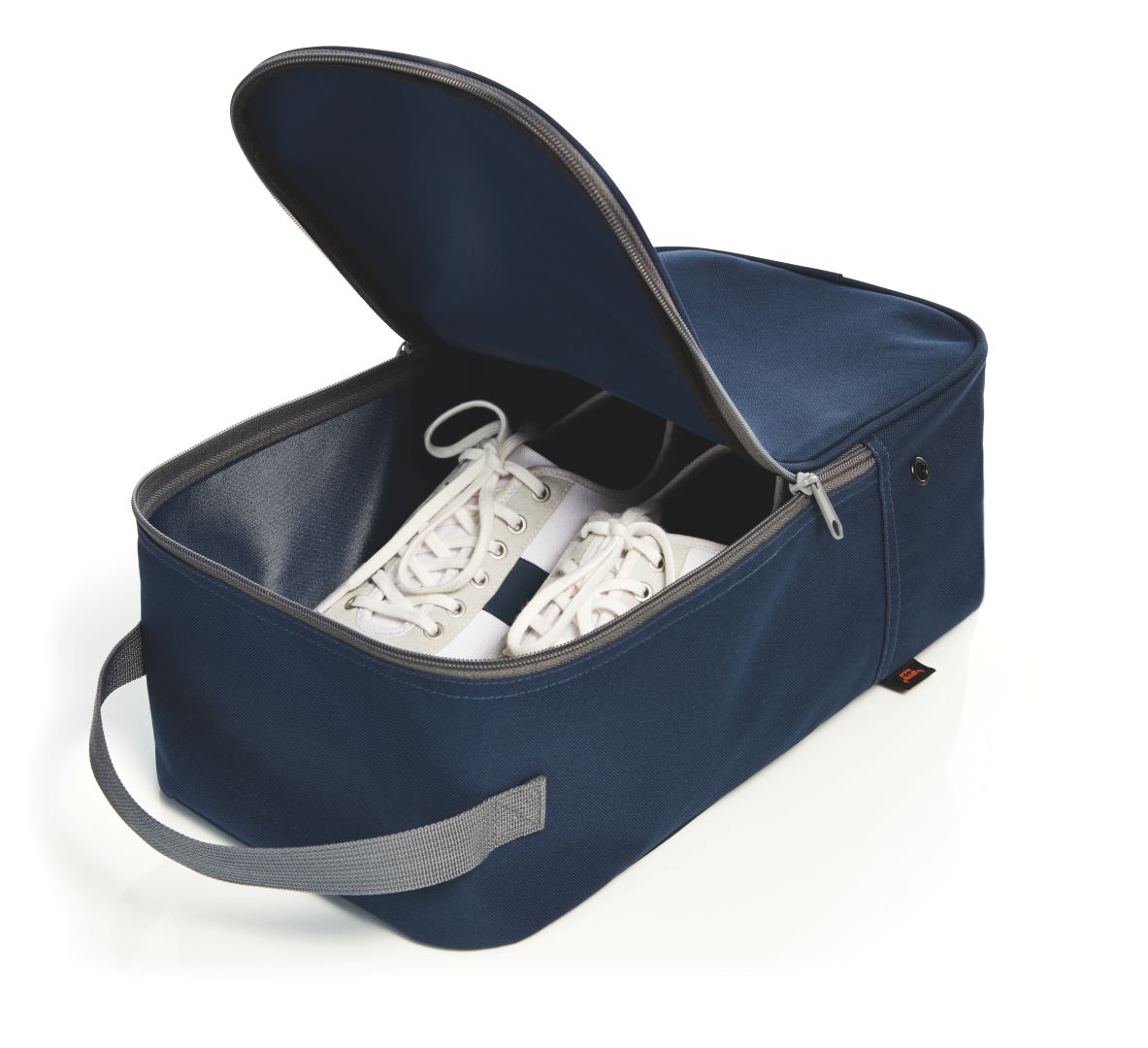 Whether it’s new pairs, old ones, sporty or elegant: the shoe bag SOLUTION gives all shoes a practical temporary home – accommodating sizes up to 46. It features ventilation and a convenient wide-opening 2-way zip. Ideal as a bag in bag for packing running shoes in a holiday suitcase, pumps in a travel bag or trainers in a sports bag. The shoe bag can also be wonderfully decorated for effective advertising. This member of the SOLUTION family makes an attractive and exceedingly helpful organisation talent, and not only as a case for shoes. It also likes to store other items such as cables, earphones etc. on the shelf at home, games and pens for car journeys, knitting things, socks... or whatever else you can think of.