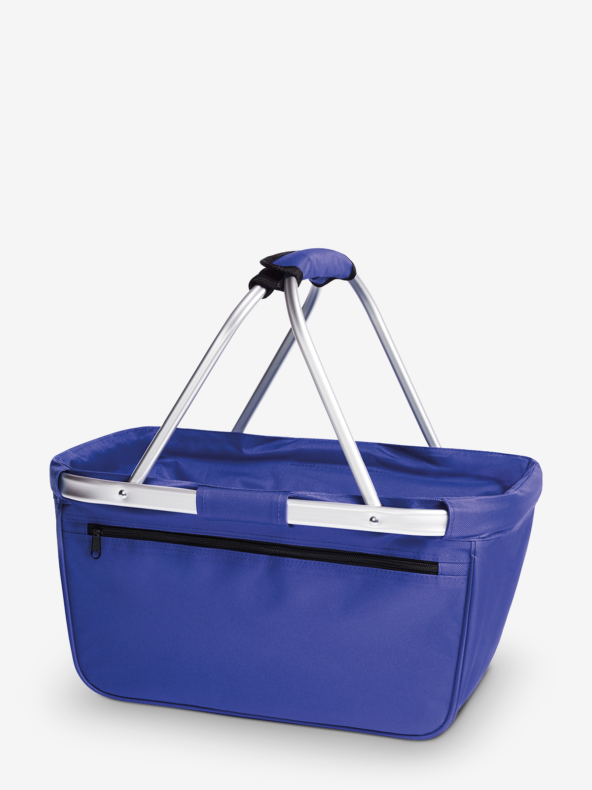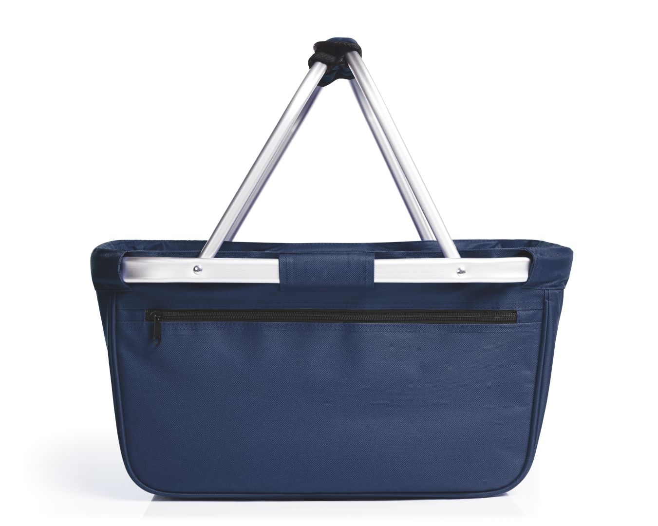 nicely designed shopping basket with aluminium frame and zipper front pocket; foldable
