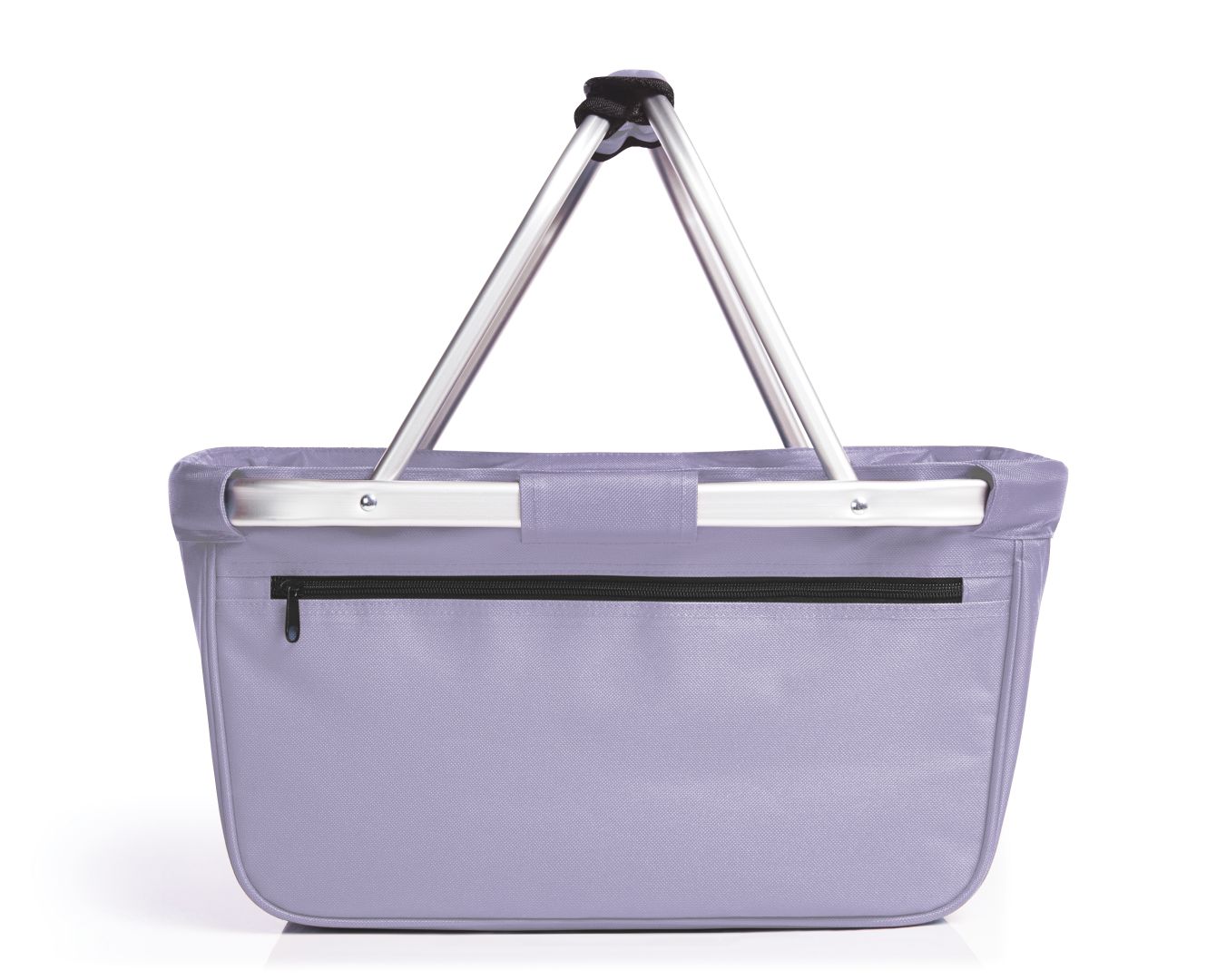 nicely designed shopping basket with aluminium frame and zipper front pocket; foldable