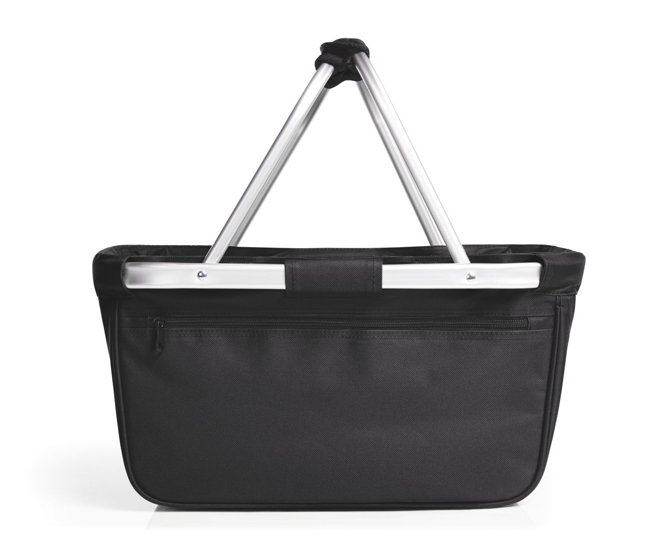 nicely designed shopping basket with aluminium frame and zipper front pocket; foldable