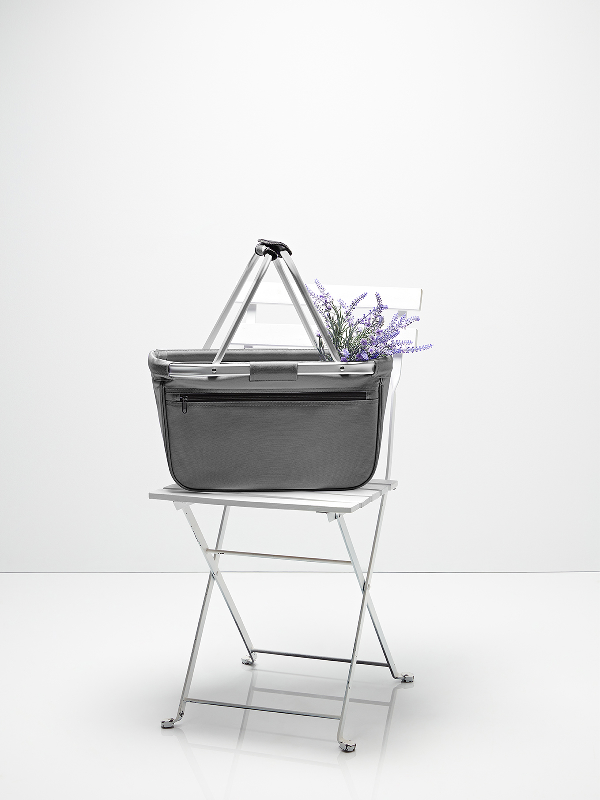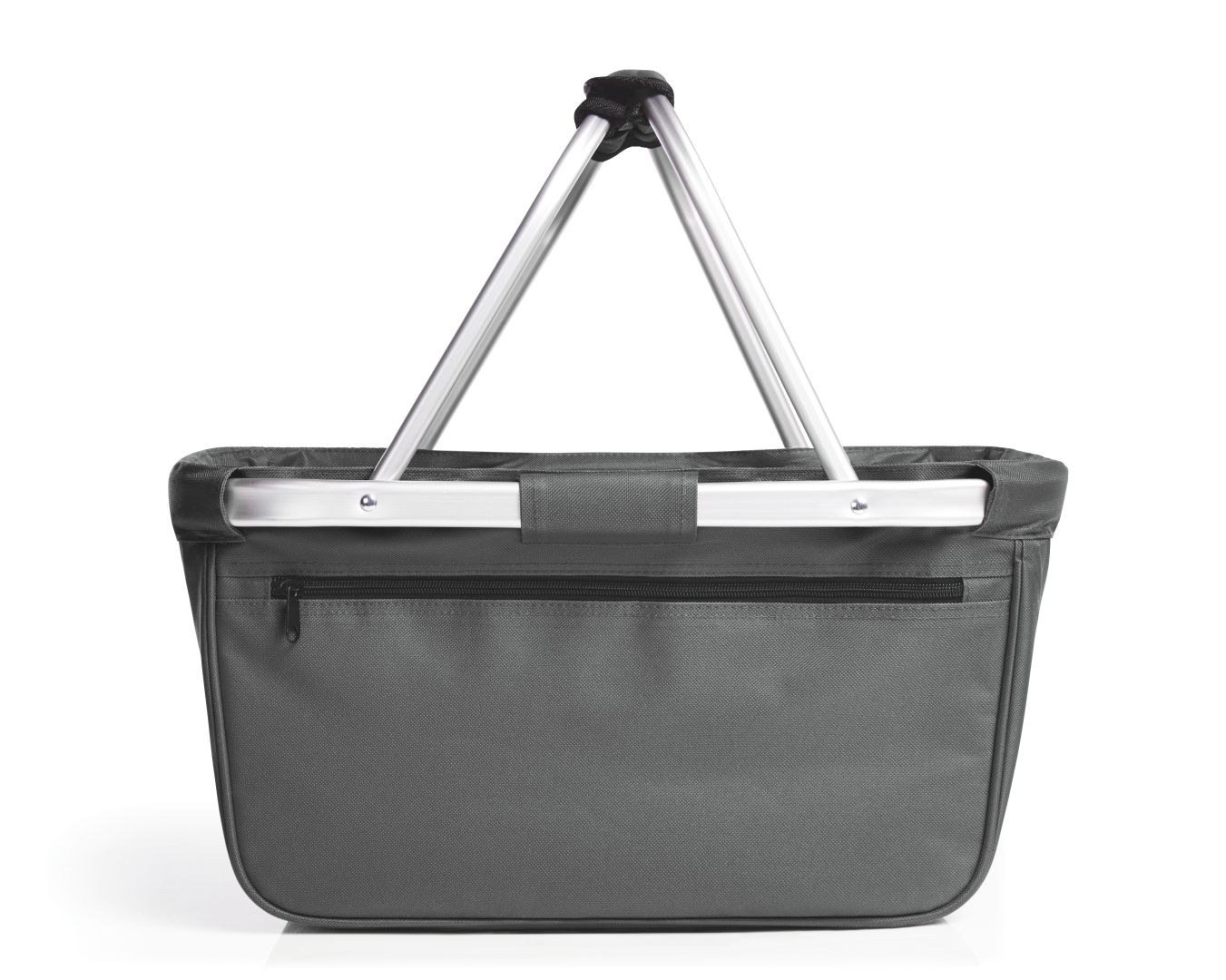 nicely designed shopping basket with aluminium frame and zipper front pocket; foldable