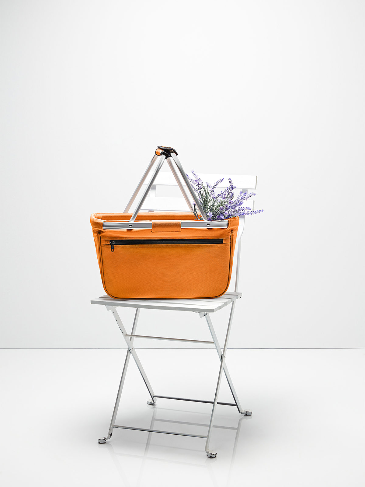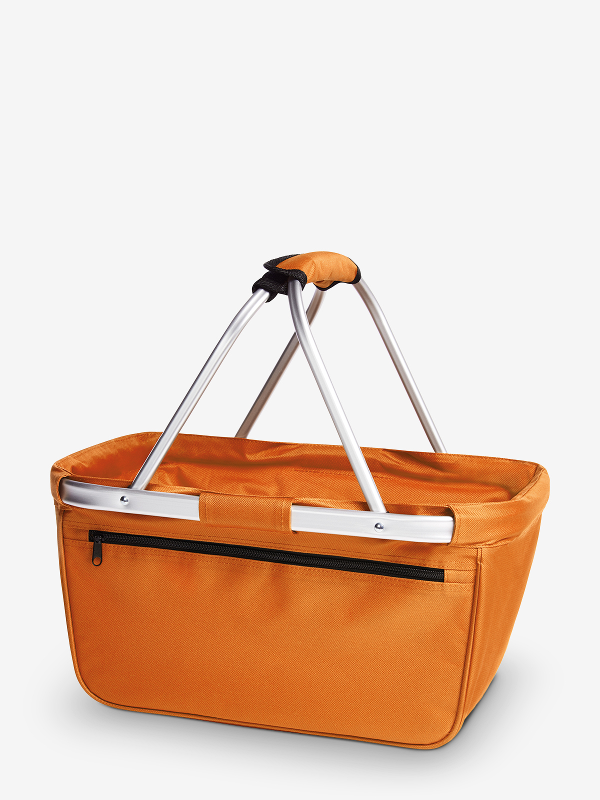 nicely designed shopping basket with aluminium frame and zipper front pocket; foldable