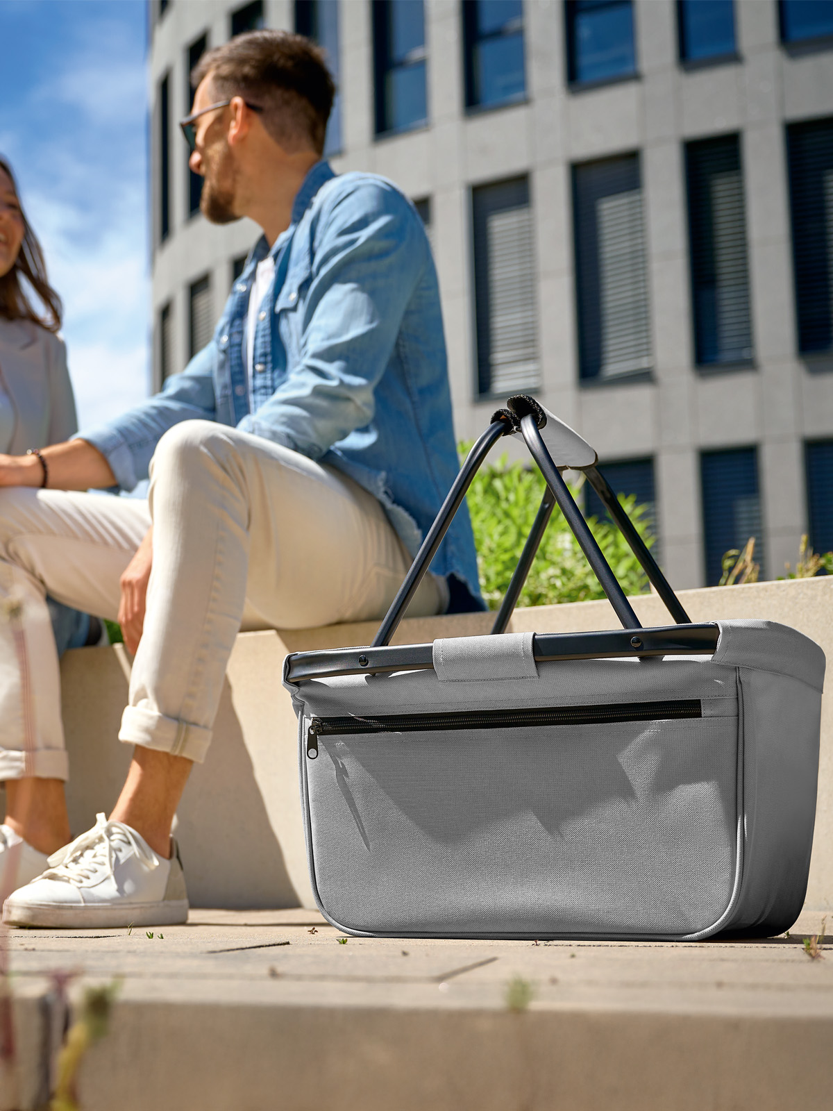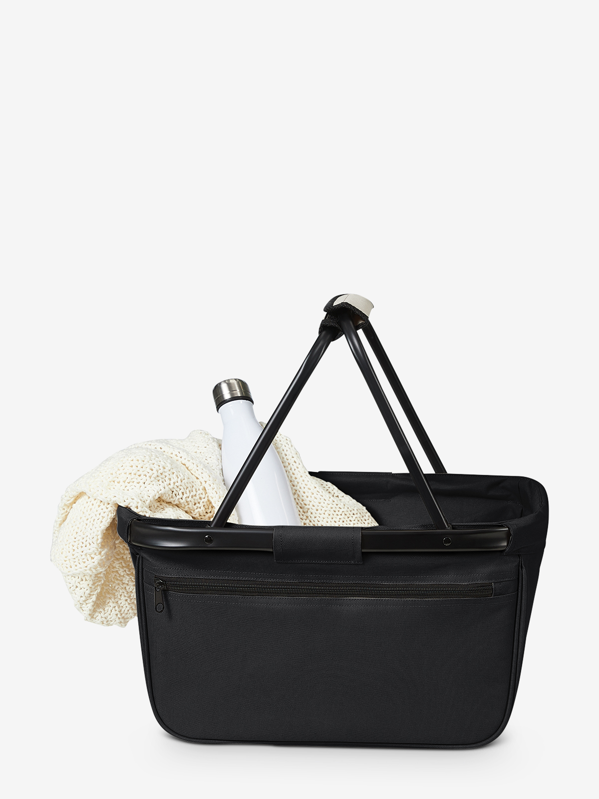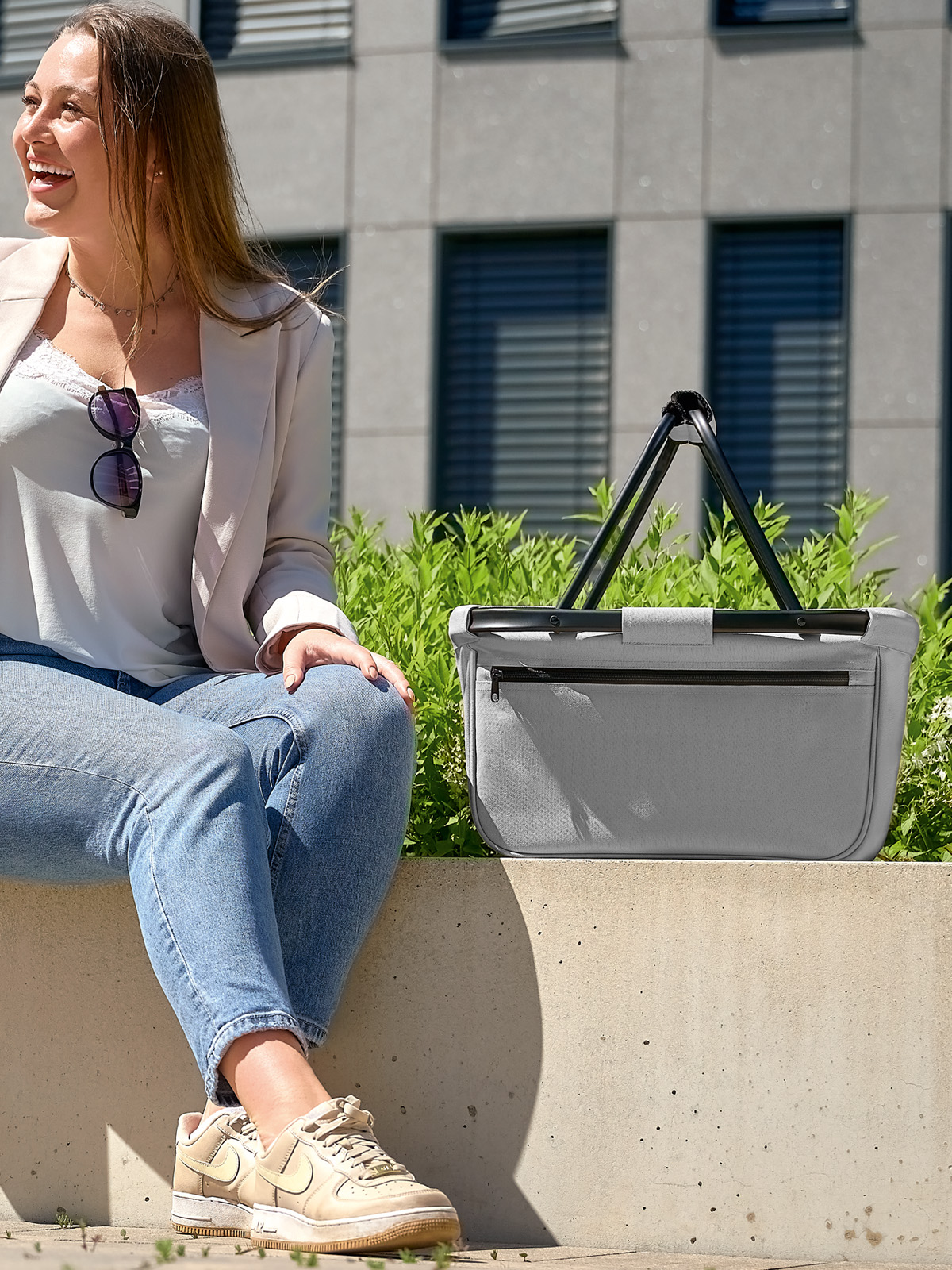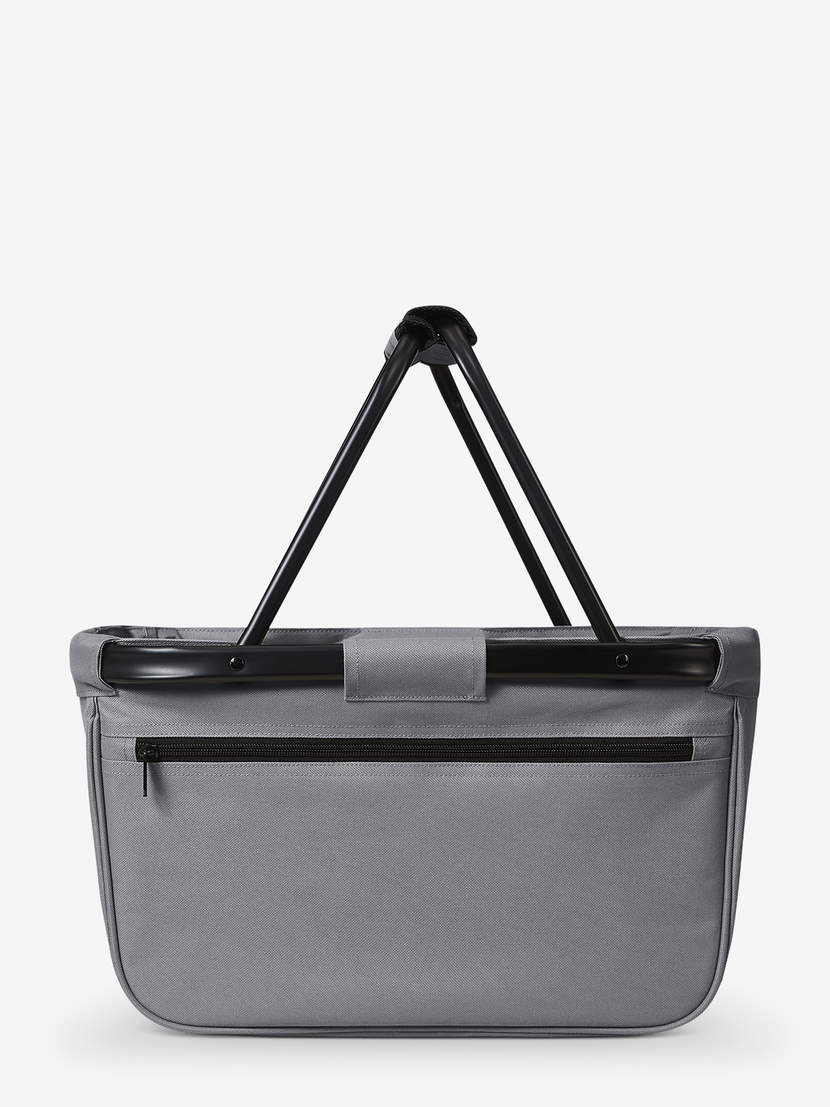 nicely designed shopping basket with aluminium frame and zipper front pocket; foldable