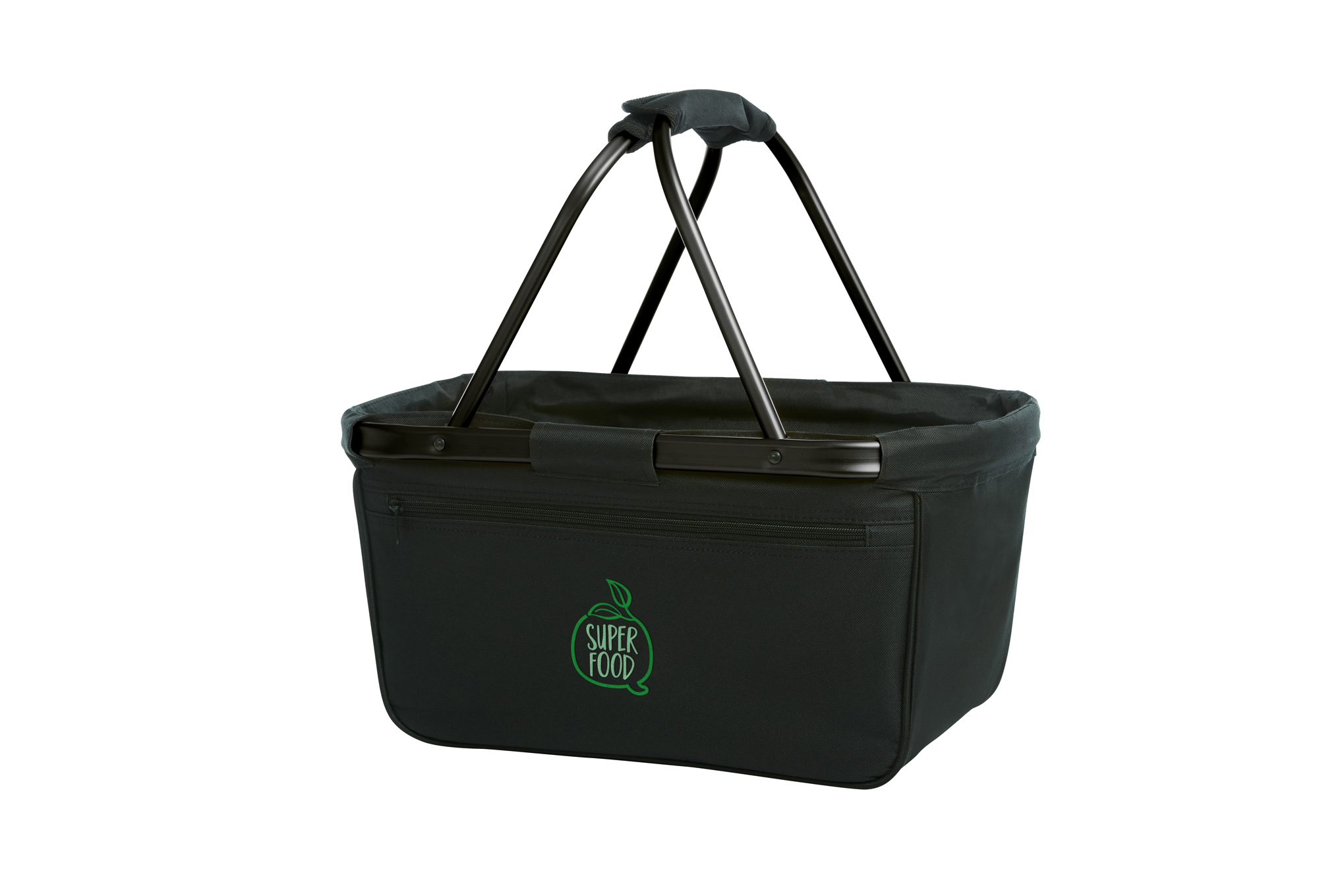 With this basket, even bargain shopping becomes anoble affair. The BLACKBASKET lives up to its name – its aluminium frame iscompletely dipped in elegant black. If you also choose the cover in black, youcreate a backdrop against which advertising applications by embroidery or printare particularly effective. Would you like a different colour? Then thecontrast between the black frame and the coloured cover ensures that thismodern shopping basket becomes a stylish accessory that carries far more thanthe purchase. As a design object, he can collect magazines or provide winebottles in the living room, for example. However, it unfolds its clearadvantages on the go, such as the low weight or the space-saving foldingoption.