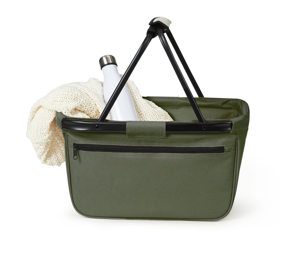 nicely designed shopping basket with aluminium frame and zipper front pocket; foldable