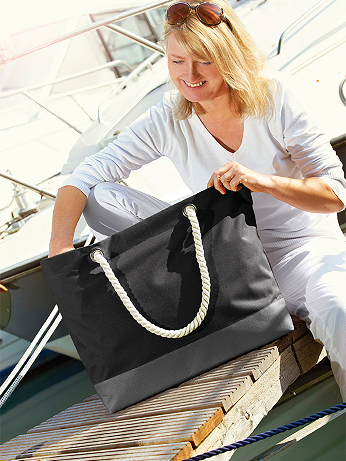When you look at it you can hear the sound of the waves, the whistling wind and the seagulls – even when you are in line at the supermarket. The BONNY shopper exudes a maritime flair wherever it goes. There are many opportunities to take it out; this large bag with its distinct grey bottom, which protects it from dirt and highlights the brightness of the colours, is an ultimate solution. Ideal for shopping at the market or in the city; going to the beach or on weekend trips. For everyone who loves some extra inspiration from the sea. Ahoy!