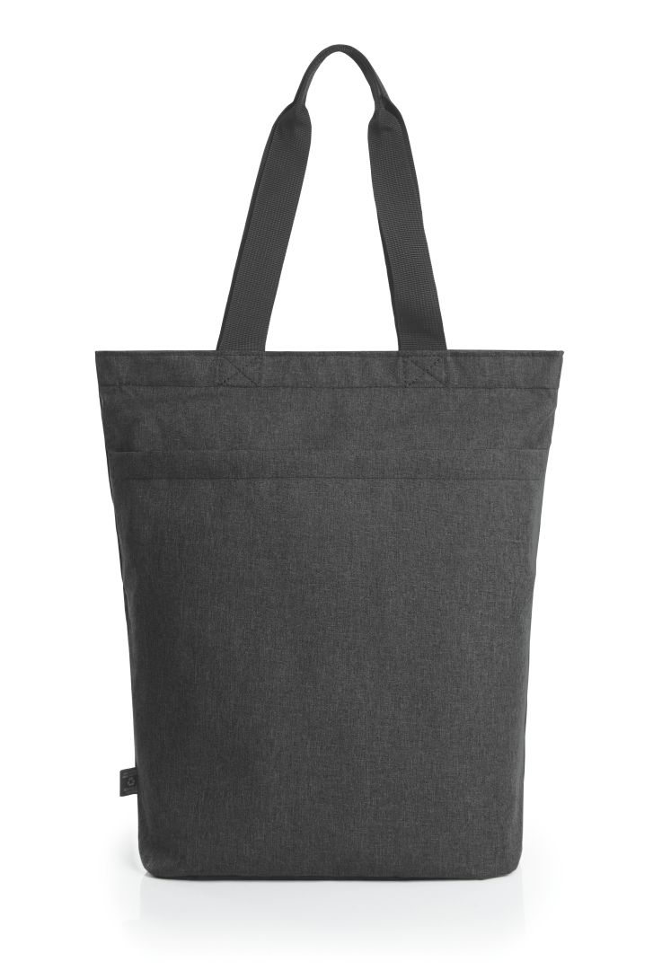 urban shopper with zipped main compartment; rPET upper material; padded base; zipped outer pocket; two carry handles