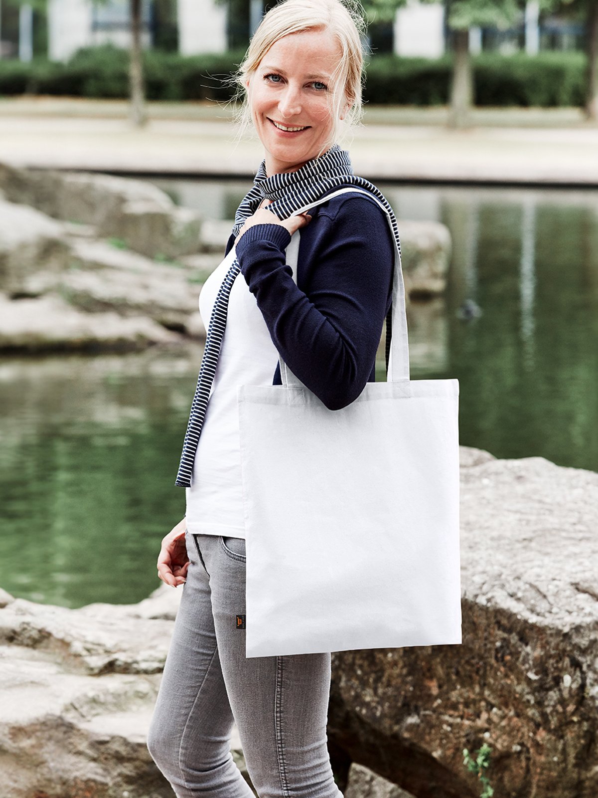stylish, practical carrying bag made of sturdy cotton; long handles