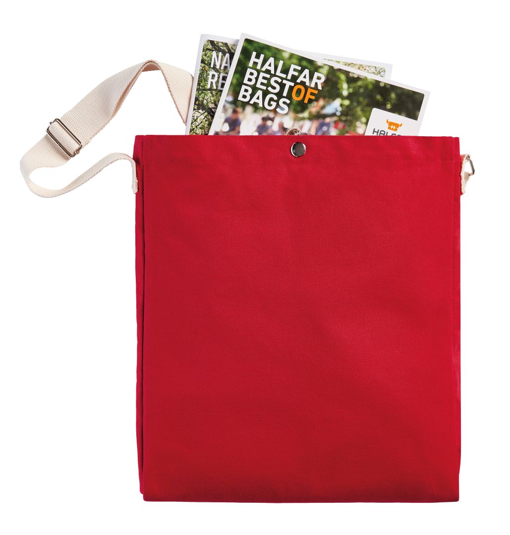 streamlined shopper with large print area; spacious main compartment - ideal for catalogues and A4 documents, closed by press stud; wide, adjustable cotton shoulder strap