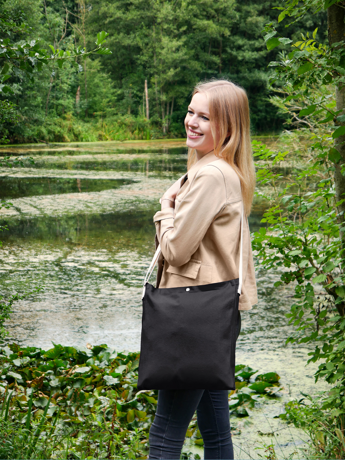 The components of the shopper LIKE are listed quickly: cotton body, shoulder strap, press stud to close. This simplicity is what makes the cotton bag and provides for very special qualities. On the one hand, of course, it’s very low weight – making it perfect as a trade fair bag. It’s format also seems tailor-made for brochures and catalogues or for little shopping trips in between. On the other hand, the shopper impresses with its wide, comfortable-to-carry natural should strap, which can be adjusted using the metal buckle. Not to mention: the metal accessories! They provide for a real quality statement in the otherwise so restrained (and low-cost) bag.
