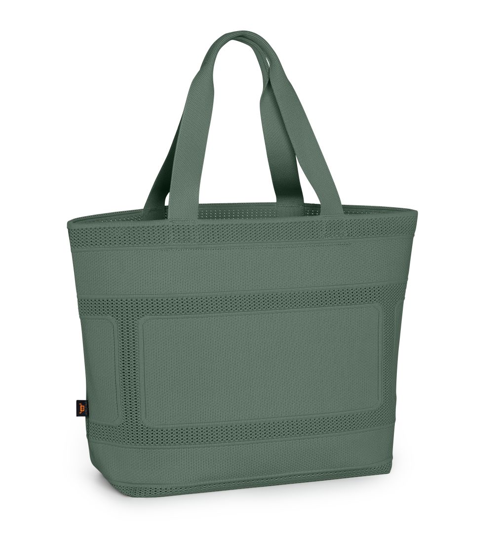 innovative knitted shopper; attractive tile look: mono material; large main compartment with hanging organiser; ergonomically designed shoulder straps