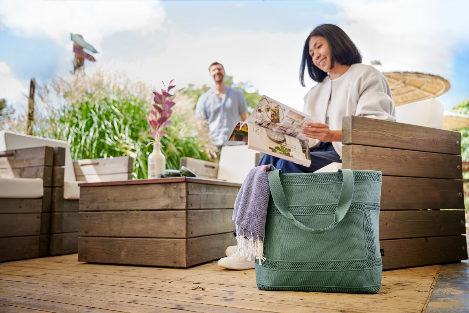 With a bag as beautiful as this MONO, we first want to talk about the obvious: the exciting mix of knits and patterns, the trendy colours, the generous volume, the attractive tile look... and then we come to the inevitable: Even this beautiful bag will eventually return to the cycle of things. That's the time when it really scores big points, because the MONO is ideal for recycling. Its name is no coincidence: the shopper is made from the same material from top to bottom, from the large main compartment to the hanging organiser and ergonomically shaped straps. No extra zip, no extra strap material, no buckles and no coating to interfere with this proverbial uniqueness. For all brands and companies that love innovation and want to be optimally prepared for the circular economy with us.