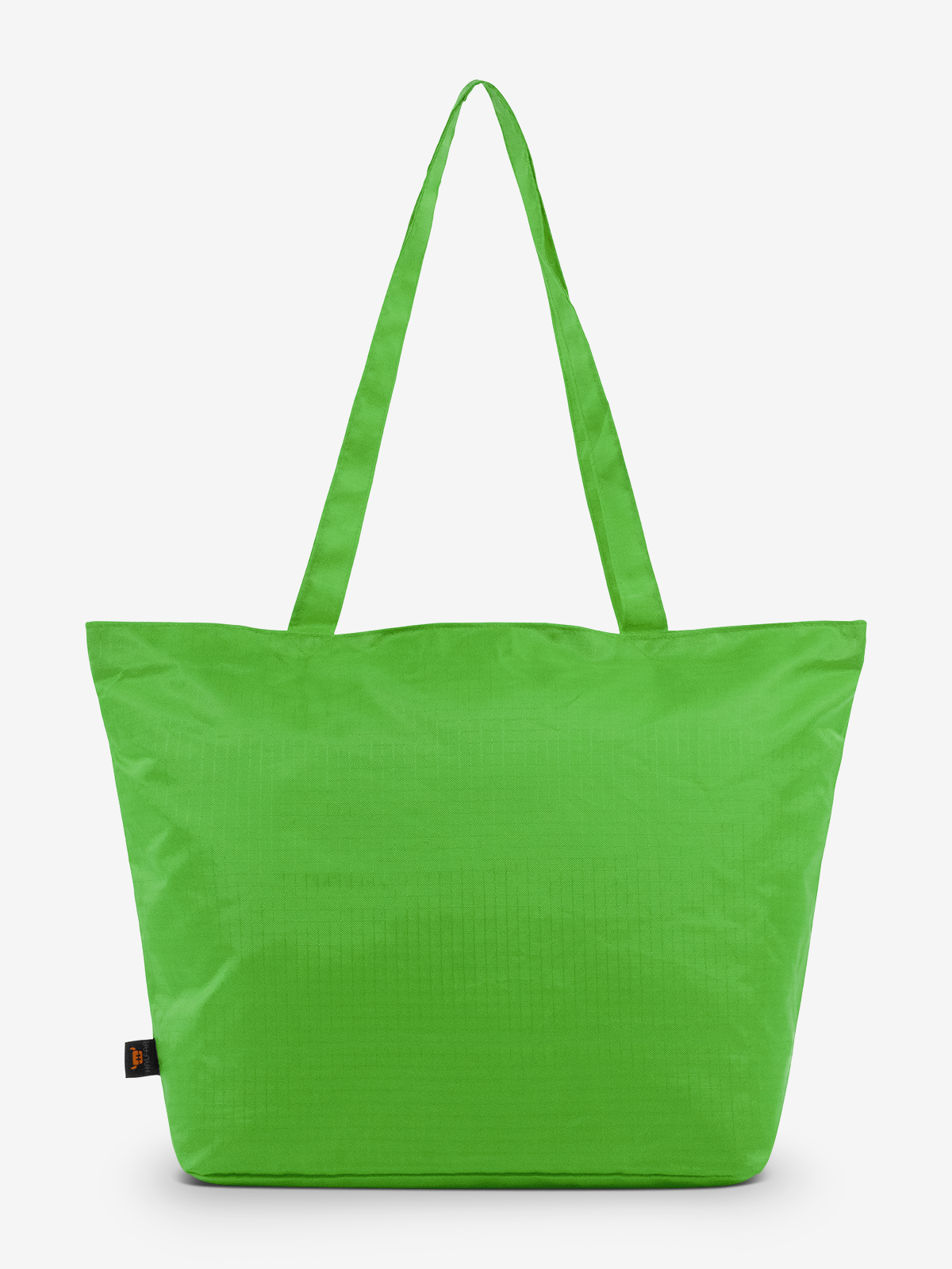 Colourful, wonderfully light and with a silky-matt shimmer: the shopper STORE. One for all situations: as a second bag, or folded away in a handbag or suitcase, it makes a lightweight companion. Folded out as a shopper, the STORE is appealing and has high value of use. The main compartment can be closed with a zip after all. Its long handles can be worn wonderfully over the shoulders and the little bag in which the shopper is usually folded up proves to be a big player for keys and valuables. Its affordable price, the choice of colours and the decoration possibilities make the shopper STORE into an excellent promotional bag. To be brief: a 99 gram lightweight with 100% advertising power.