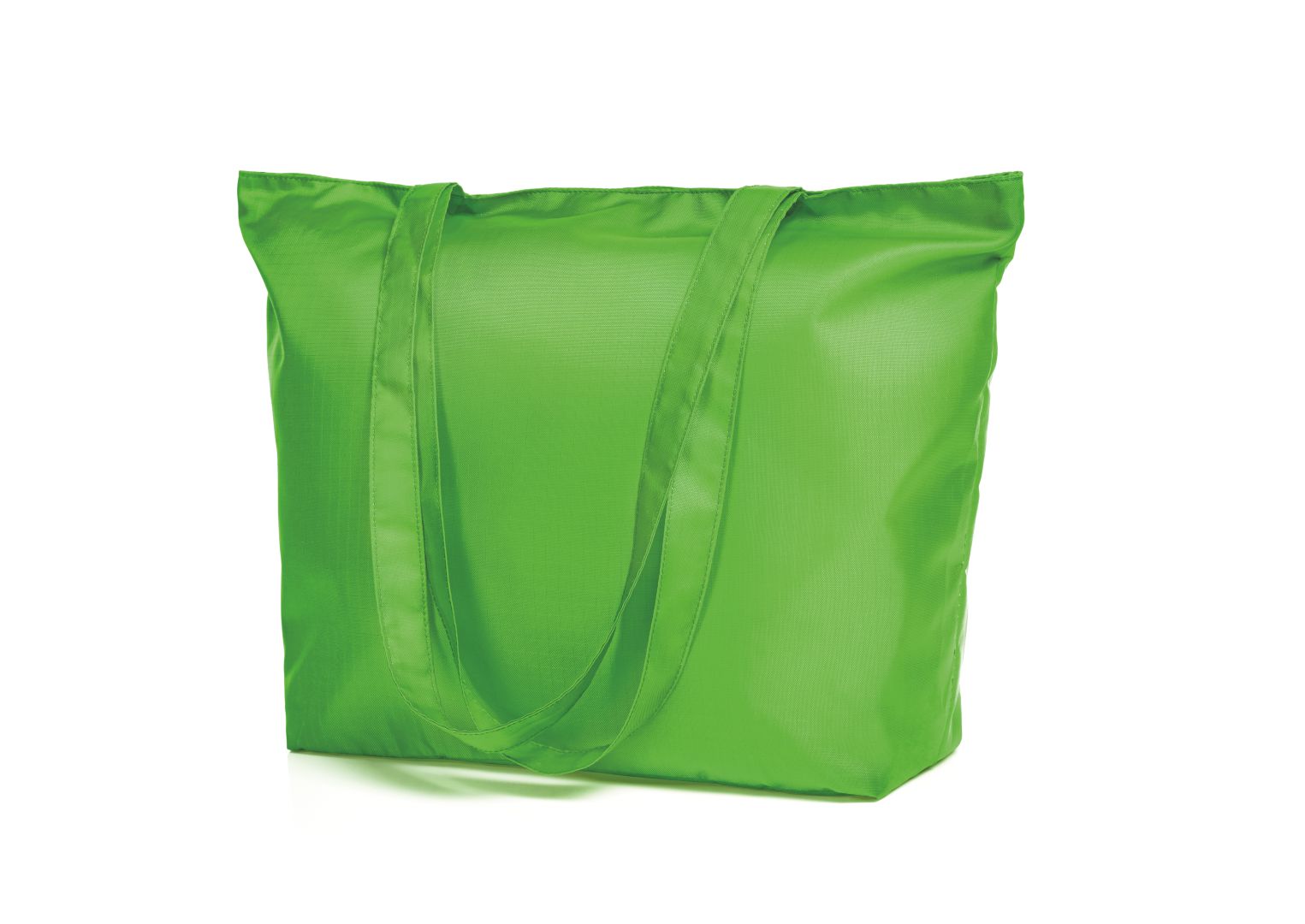 Colourful, wonderfully light and with a silky-matt shimmer: the shopper STORE. One for all situations: as a second bag, or folded away in a handbag or suitcase, it makes a lightweight companion. Folded out as a shopper, the STORE is appealing and has high value of use. The main compartment can be closed with a zip after all. Its long handles can be worn wonderfully over the shoulders and the little bag in which the shopper is usually folded up proves to be a big player for keys and valuables. Its affordable price, the choice of colours and the decoration possibilities make the shopper STORE into an excellent promotional bag. To be brief: a 99 gram lightweight with 100% advertising power.