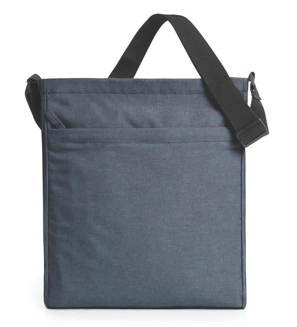 It’s true: this bag was once a bottle. Strictly speaking about 24 bottles, as its upper material is made from the fibres of recycled PET bottles. However, you do not notice that the smart CIRCLE shoulder bag is enjoying its reincarnation – apart from our own especially sewn-in recycling label of course. On the contrary: it looks decidedly fresh in its linear shape. A black strap running around the sides creates additional accentuation. Thanks to its format and its lightness, this bag is very well suited for print materials – making it a modern bag for exhibitions.