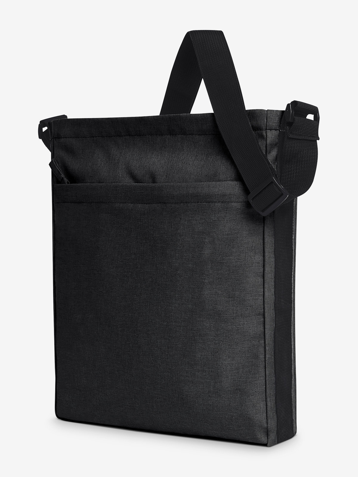 It’s true: this bag was once a bottle. Strictly speaking about 24 bottles, as its upper material is made from the fibres of recycled PET bottles. However, you do not notice that the smart CIRCLE shoulder bag is enjoying its reincarnation – apart from our own especially sewn-in recycling label of course. On the contrary: it looks decidedly fresh in its linear shape. A black strap running around the sides creates additional accentuation. Thanks to its format and its lightness, this bag is very well suited for print materials – making it a modern bag for exhibitions.