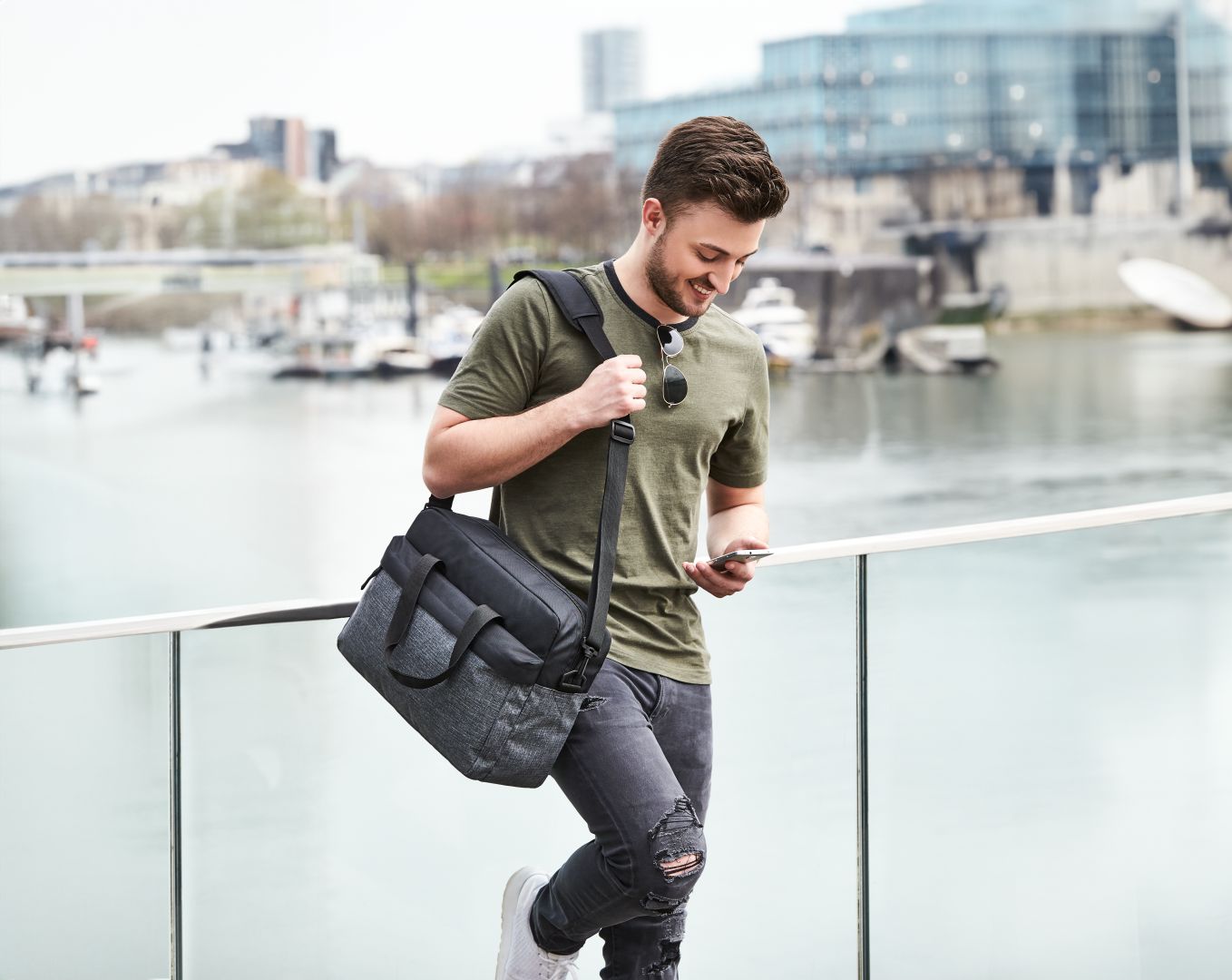 Is it still leisure or business already or vice versa? Decide for yourself, but this bag is certainly ready for anything. For a day in the city. Spontaneous, casual and wonderfully cool. Or for everyday in the office. Compact, well organised and with a refreshing design. After all, the shoulder bag offers space for two large A4 folders, and makes packing easy with an all-round zip on the side. And carrying it is literally easier thanks to the comfortable padding and fastening strap for trolleys.