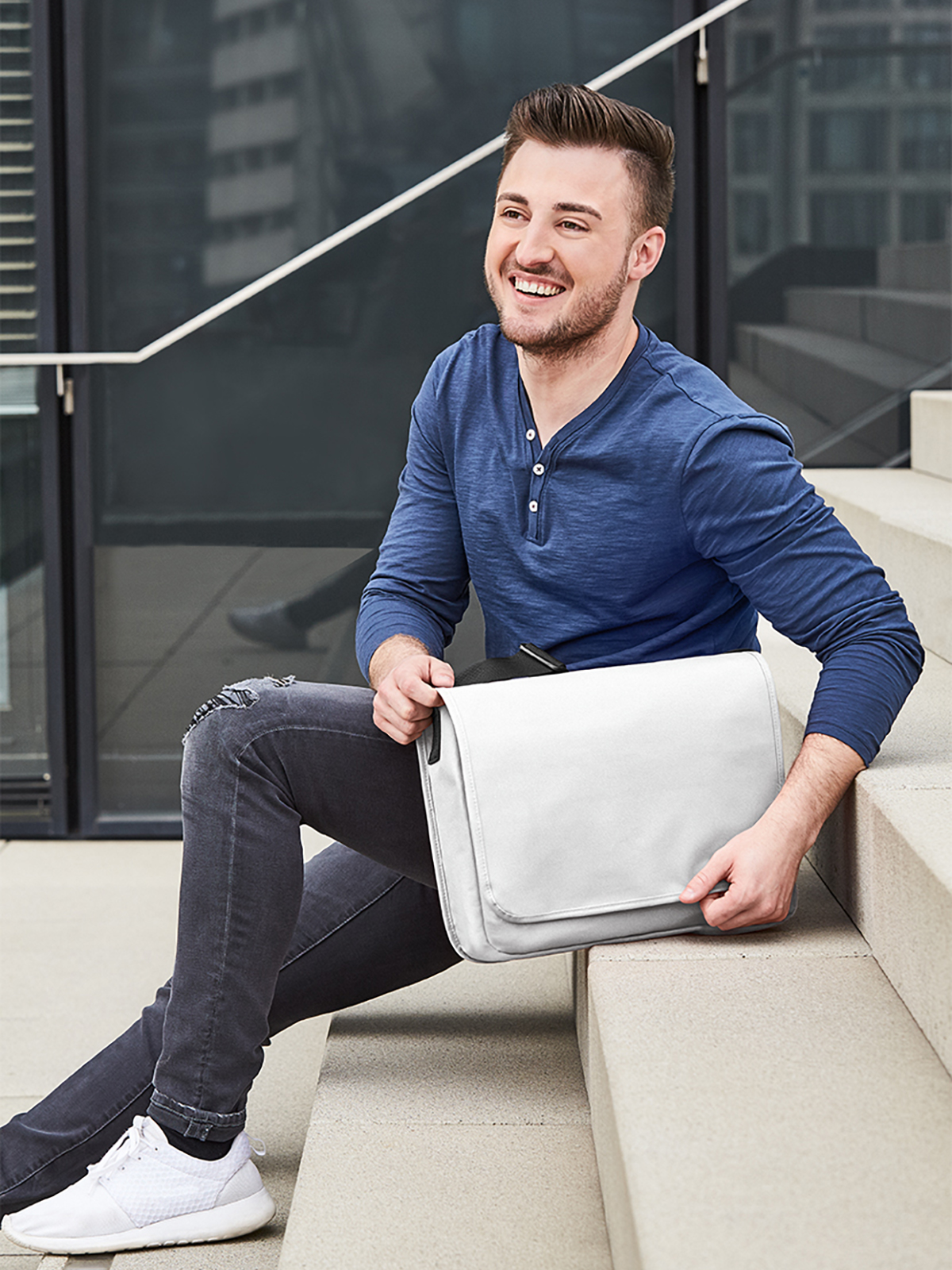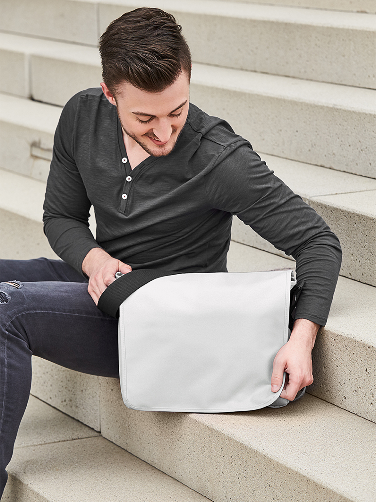 Sometimes you just need one thing to cater to all tastes. The shoulder bag KURIER conjures up a veritable rainbow of colours - and puts a smile on your face. So grab that promotion. Simply select the right colour to suit your Corporate Design. Fit out the organizer on the inside and the flat slip-in pocket for the promotional team if required. And decorate the front with your individual logo, of course. By the way: The KURIER obviously conveys your message perfectly as a customer premium or employee bag. And with excellent value for money