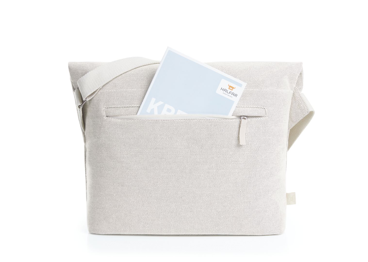 Light shades, natural materials, clear shapes: the Scandinavian style has moved into many homes, from Bielefeld to Berlin. At HALFAR® we also offer it to take home: in the LOOM shoulder bag. The comfortable cotton mix, the natural sandy shade from zip to shoulder strap and the linear design make this bag into a companion with a likeable Nordic flavour. Clever feature: the border with various flaps for variable closures and the obliquely angled shoulder strap, which allows the bag to always sit comfortably.